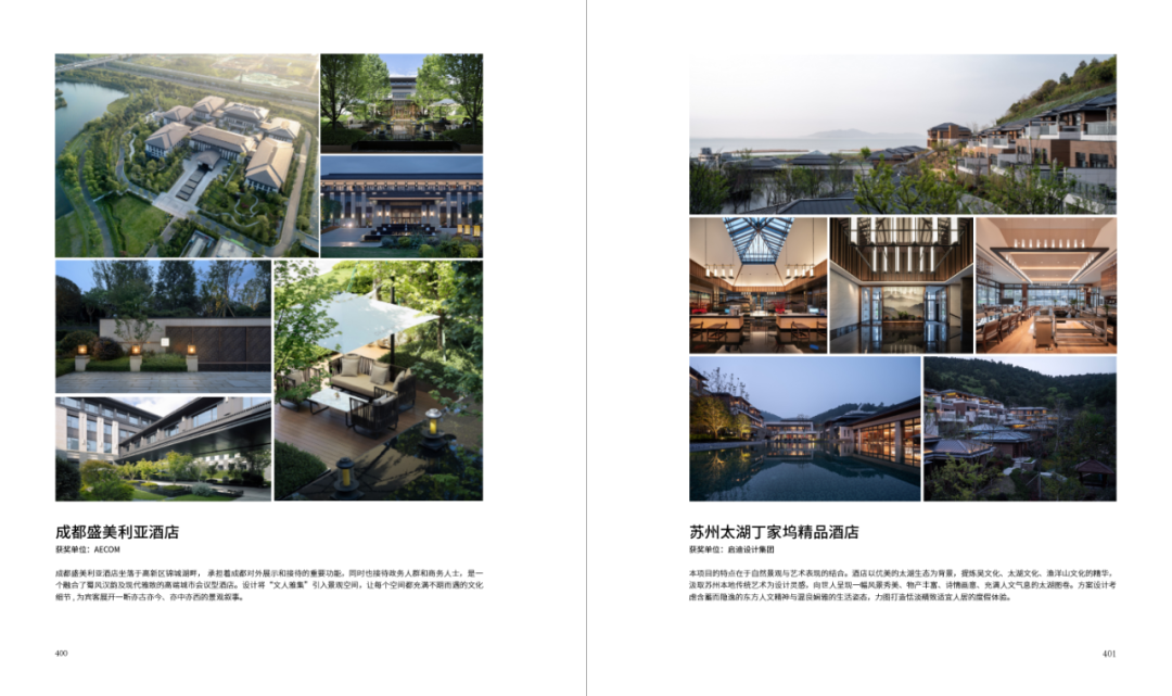 本专辑内容涵盖建筑设计、景观设计、室内设计、文旅设计、综合类5个版块,每个版块再分为3个小类,以下为各设计类别节选。