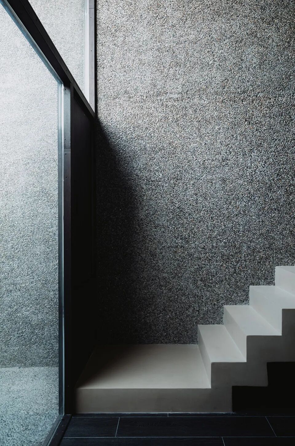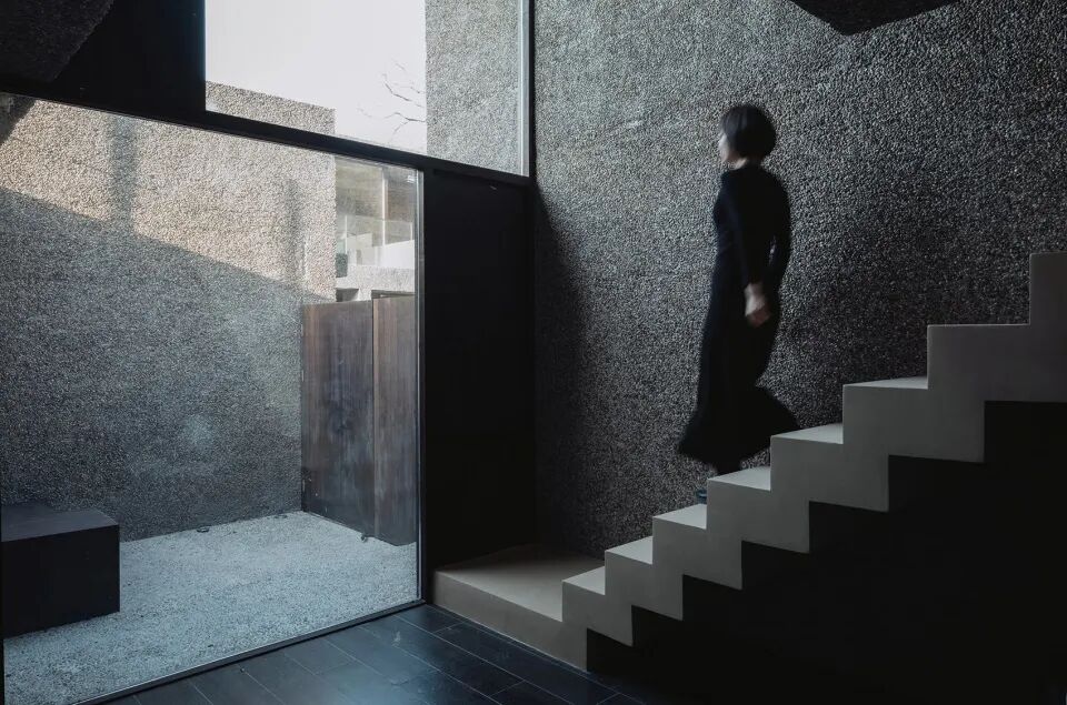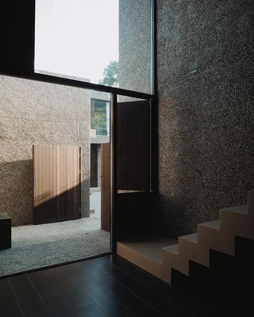▲起居空间东侧的水刷石墙面 ©汪剑柃