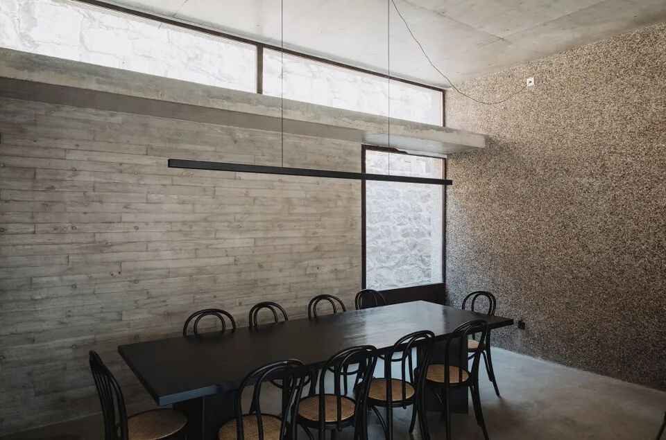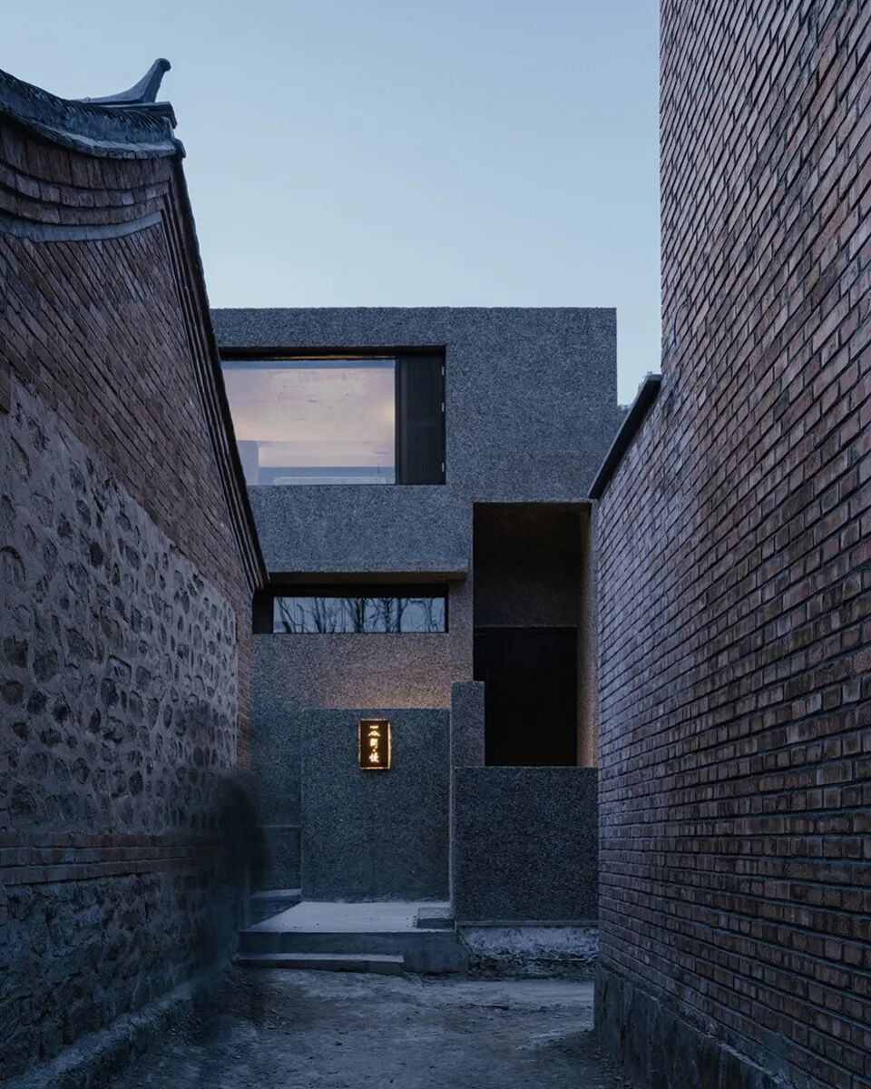而坚硬的混凝土墙则有另一番面貌,它首先是建筑的结构,是空间分割的构件,同时又是拥有独特触感的真实材料。我们有意识的对拆去了模板之后的混凝土墙进行筛选,选择性的保留了一部分施工比较理想的墙体裸露出来。一种材料,当你为其注入生动的官能时,它便超越了所有的构成法则,这其中的触觉、嗅觉和听觉特性被全身心的调动起来,使那些只在这一建筑语境中以这一途径才能得到理解和显现的材料体现出唯一性、在地性和适配性的独特意义。材料的真实、延续与当代演绎,也直接的反应了场地与建筑的彼此协调、转换和历史文脉的内在衔接。
