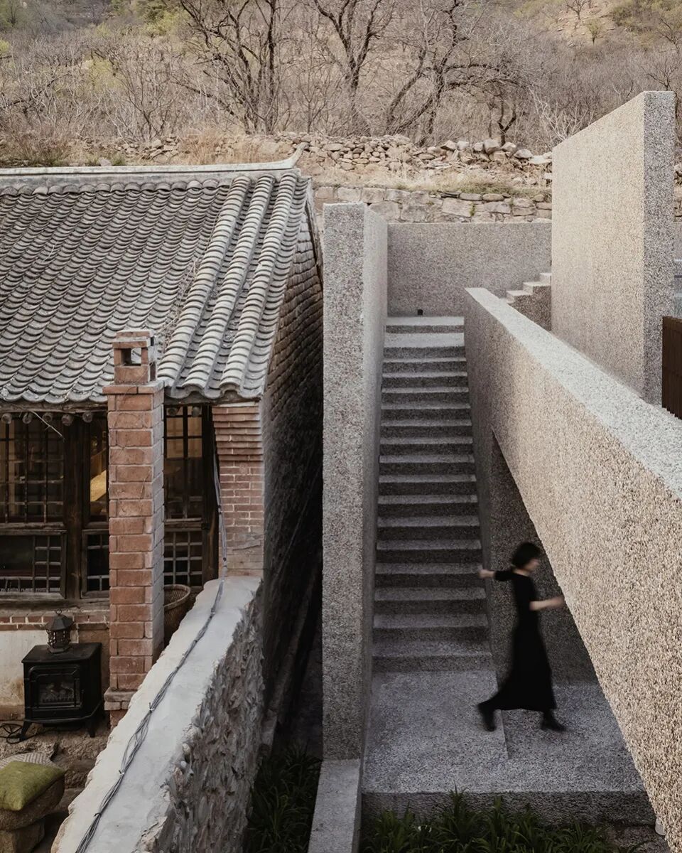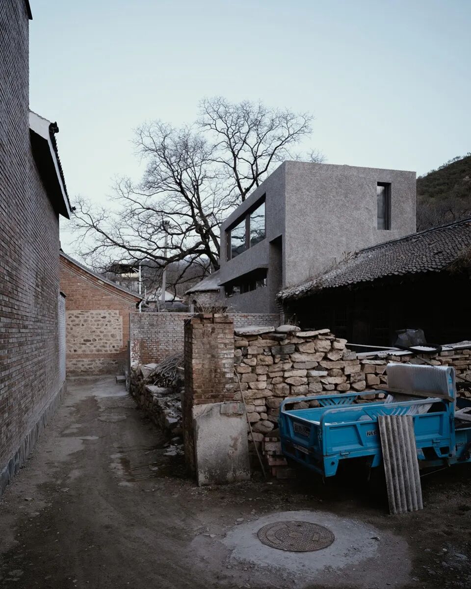 位于北京怀柔区九渡河镇西北深山鹞子峪沟内的鹞子峪古堡,始建于明代,曾经的军事防御要地如今依然居住着13户居民,当地部门于2007年依照现存制式进行了一次全面的修缮,目前古堡依然较好地保存着原始的文物风貌。作为当代“院落式”的住宅结构——慢院(bridge yard)临近古堡的东北角,是一座完全新建的院落。