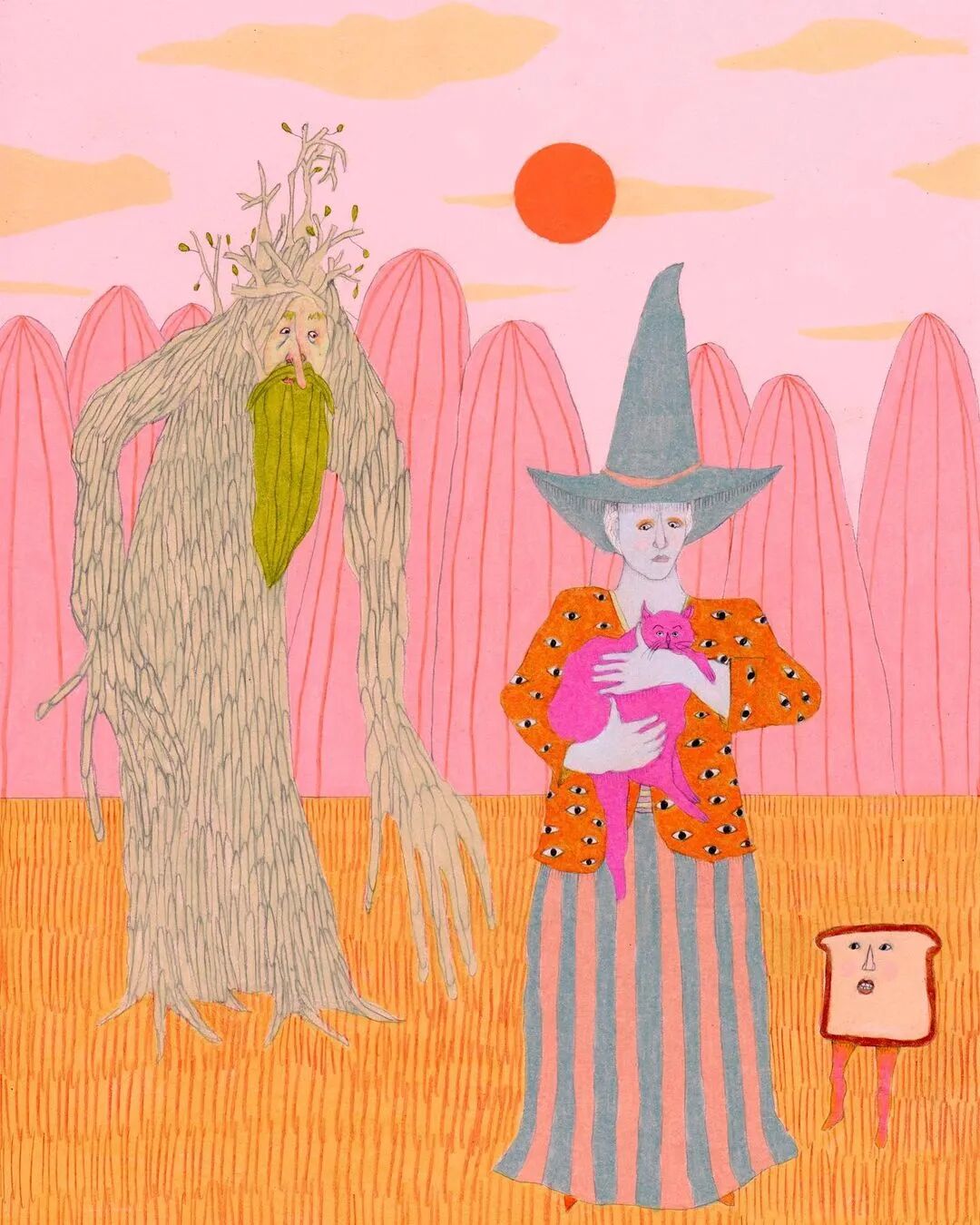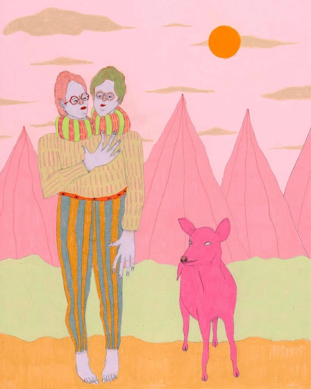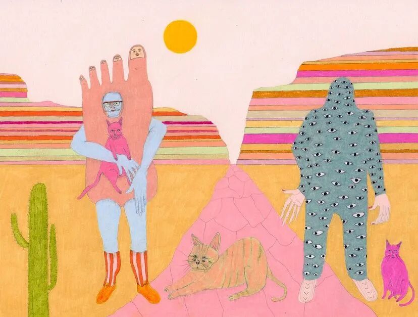 Rhea Mack用暖洋洋的色调,独特的角色塑造简单的画面,仿佛描绘了一个怪诞的世界,人与人、人与动物之间的关系令人匪夷所思。