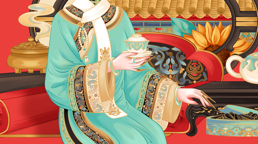 珐琅彩西施壶、掐丝珐琅、盖碗等清代元素