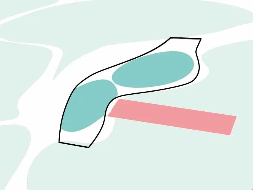 这是7000万年前下蛋的恐龙选的风水宝地,也是地质学家勘察分析后划出的基地范围,因为恐龙蛋的出现,二者穿越7000万年建立了联系,共同决定了建筑的平面形态。