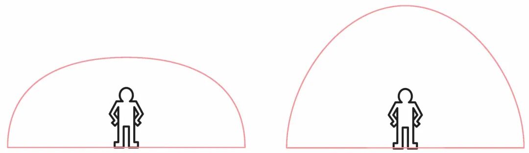 众所周知,三角形是最稳定的形状,然而三角形的空间往往给人过于逼仄的感觉,且空间利用率较低。既然这样,让三角形的边稍微伸展一下,变成一个半圆形怎么样?