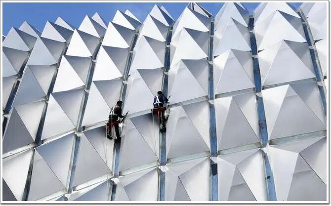 虽然但是,之前说古根海姆博物馆扭曲的金属很叛逆,现在的钢铁大房子就不叛逆了吗?让我们先看一眼建好后的建筑长啥样。