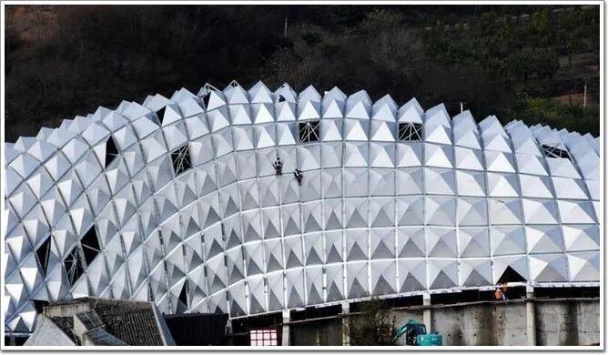 最后,还是标准化定型化设计,工厂预制,现场装配,可替换更新,地面的支撑点也可以进行微调节的网壳结构成为了最后赢家。