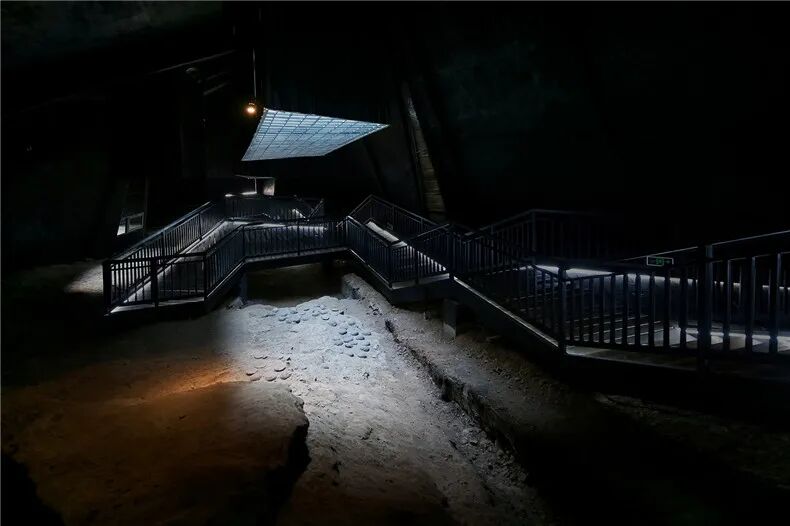 在挖掘现场,恐龙蛋群是展示的最高价值所在,黑暗的环境有助于创造具有久远历史的遗址的神秘氛围,而利用光来讲故事,就是刻在建筑师DNA里的拿手好戏。