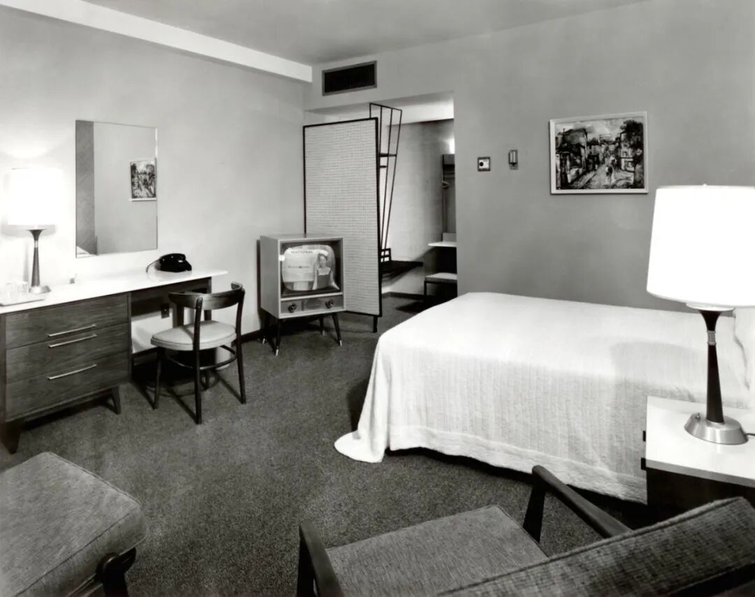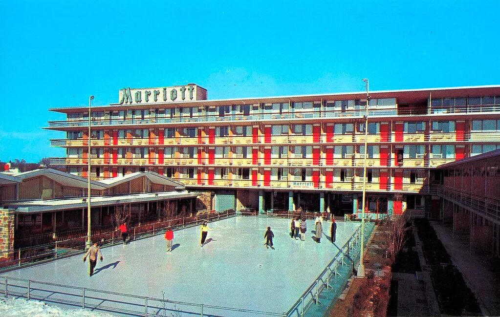 直到涉足餐饮界30周年时(1957年),J.W. Marriott先生才在意气风发的爱子Bill Marriott的鼓动下进军酒店业,在华府畔的阿灵顿出品了其酒店首秀——双桥万豪汽车旅馆(Twin Bridges Marriott Motor Hotel)。这是一座顺应公路旅行风潮的舒适汽车旅馆,坐拥泳池花园,5层主楼和装备电视机的客房。
