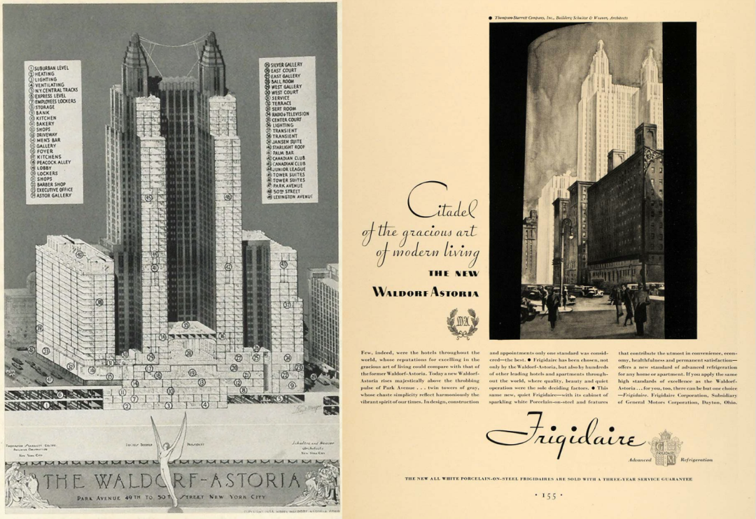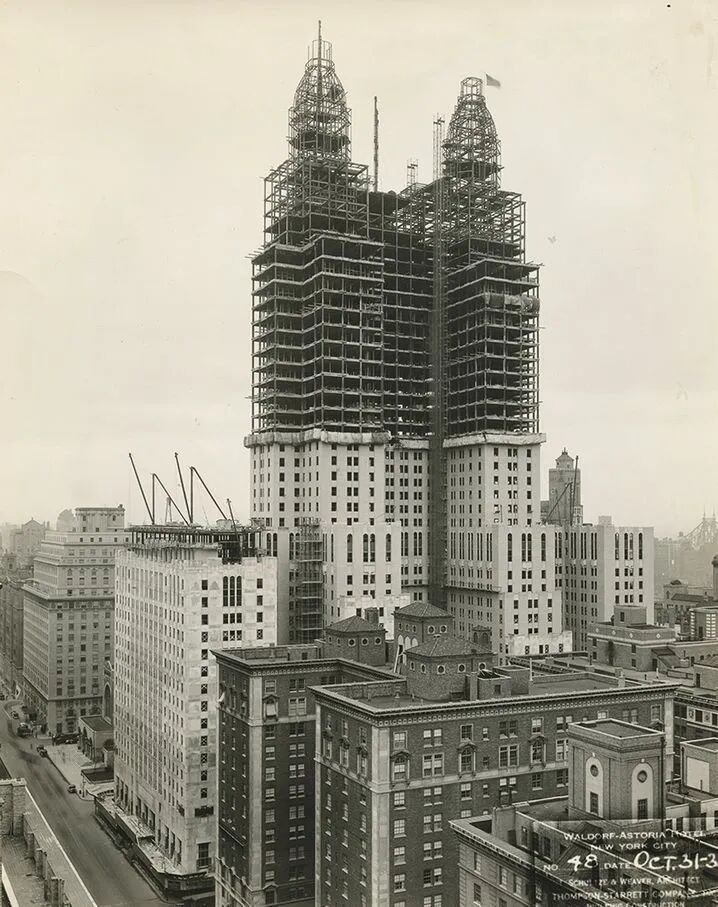 阿斯特家族缔造的“镀金年代”版华尔道夫酒店,尽管为帝国大厦的兴建而拆除谢幕,并退出了阿斯特家族的产业版图。但其巅峰理念显然在帕克大道上新建的华尔道夫酒店得到延续,这座在1931年10月1日启用的恢弘酒店,凭借47层的楼高、1413间客房的体量,华丽摘得“全球最大、最高酒店”的桂冠,老华尔道夫在镀金年代创造的先锋与巅峰,也被新华尔道夫以黄金年代的摩登形象所传承。