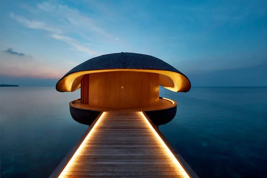 华尔道夫尽量让建筑物低调传统,让住客把注意力放在休憩空间和自然环境本身,而瑞吉则用标新立异的仿海洋生物建筑,与海中生物珍奇斗艳。