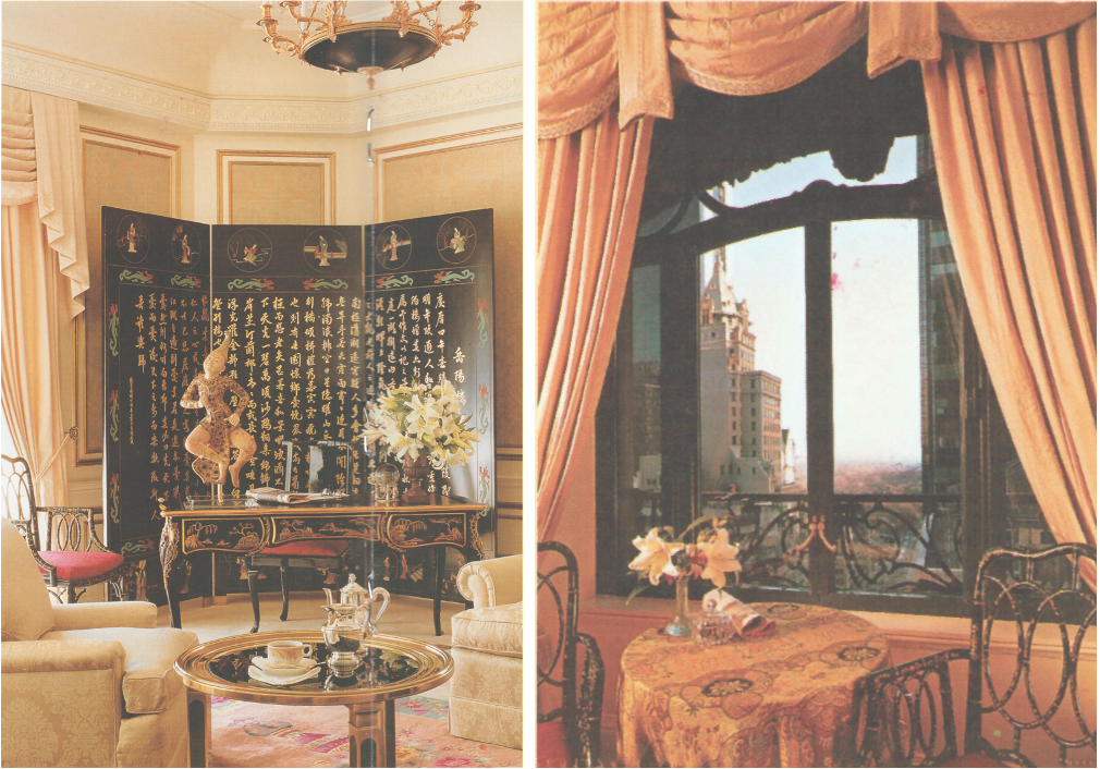瑞吉和华尔道夫很早就有很深的中国情缘,李鸿章住过阿斯特家族执掌时期的纽约华尔道夫,阿斯特四世的儿子Vincent的第三任妻子Brooke自小在中国生活过,她执掌的那场1954年的纽约瑞吉翻修加入了很多中国元素,纽约瑞吉曾有一间东方套房,里边陈列有大量中国古董,包括刻有《岳阳楼记》的屏风。
