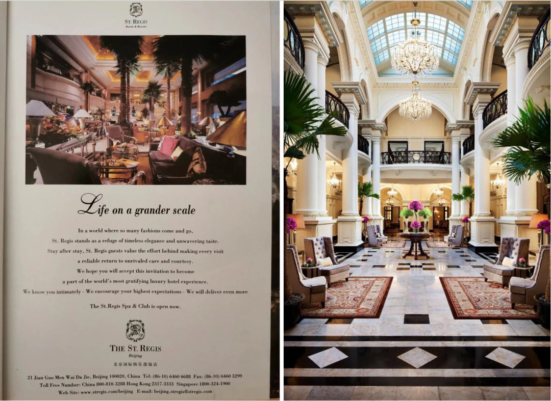 瑞吉和华尔道夫都在创牌初期即进军亚洲市场,且亚洲首秀都选在中国,并都在首秀中国后3年内完成北上两地的布局(上海首间是所有客房都标配Herman Miller的Aeron工学椅的瑞吉红塔)。我特地从20年前的《中国国家地理》杂志上翻到了那张从第一眼就惊艳到我的“北京国际俱乐部时代”的瑞吉广告。其文案至今仍是奢华酒店界惯用的辞藻。只可惜我没能再找到上海瑞吉红塔那张女管家将酒店大楼捧在手心的广告。