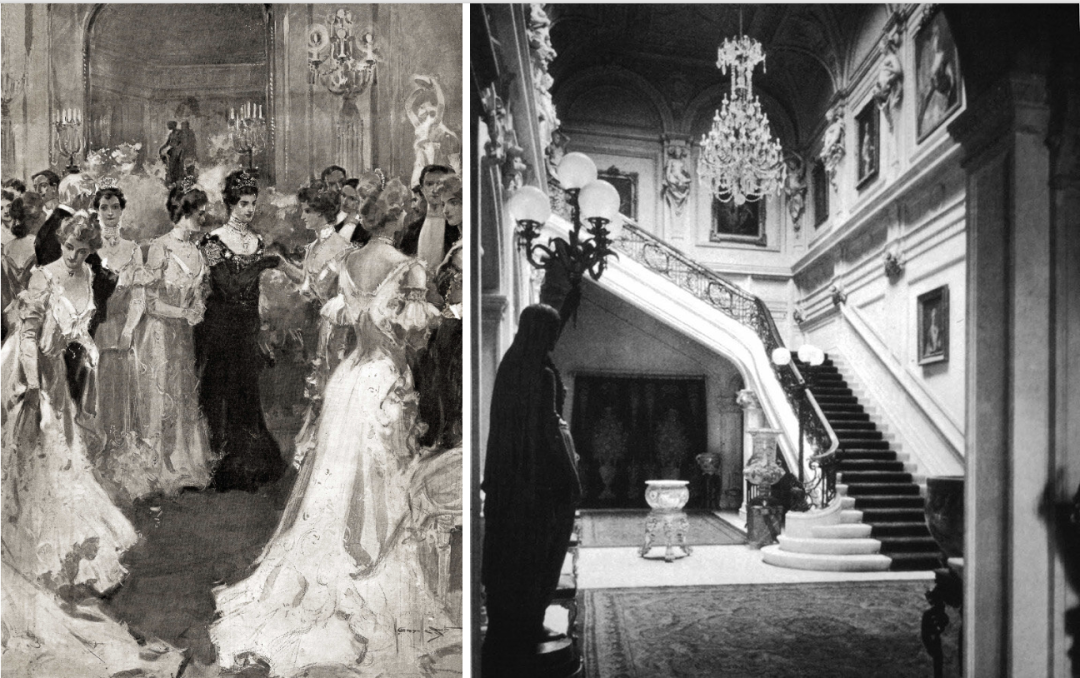 搬到上东区法式华宅的阿斯特夫人,依旧热衷于行使其纽约社交界女王的尊崇头衔,在自家大宅内举办全城名流雅士都趋之若鹜的梦幻盛筵。这座大宅其实是一座“双拼大宅”,阿斯特四世和母上各享各自对称的两翼。很懂母上的阿斯特四世特地在母上住宅的中庭打造了气势恢宏的旋转楼梯(他自己一边也如法炮制以展现平衡之美),顶部悬挂巨型水晶吊灯,确保热爱穿戴天鹅鹅绒礼服和大量钻石的母上出场时闪瞎全场。