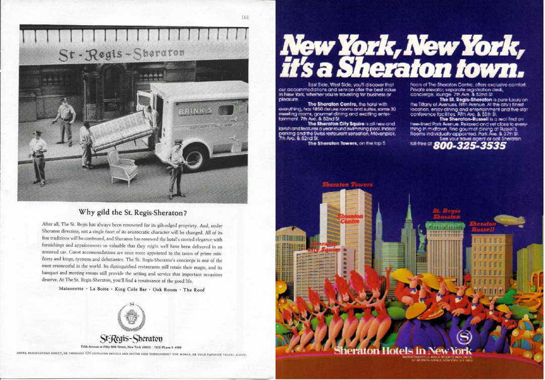 ▲ 瑞吉和华尔道夫分别被喜来登和希尔顿两大酒店帝国收编后,为集团站台的经典广告,尽显集体荣誉感。