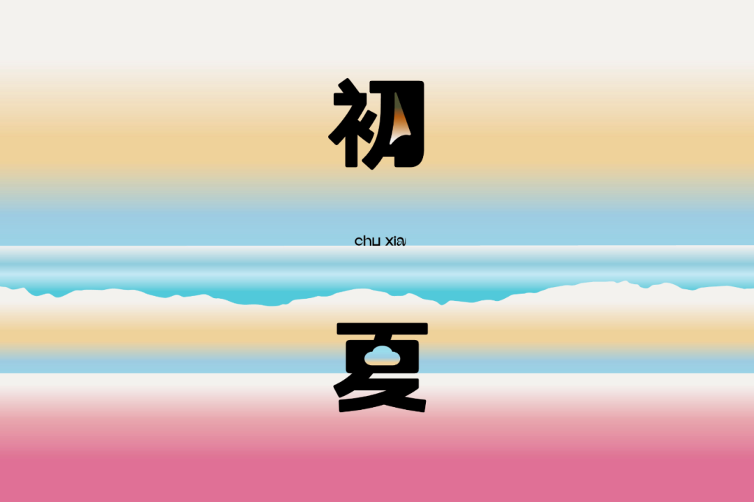 大写粗体的“初夏”二字则灵活分布在版面四周