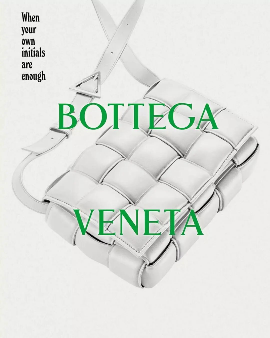 十年后,Bottega Veneta的现任创意总监Matthieu Blazy这次将这句话用了回来,连字体都刻意还原了波普艺术的字体。背景也刻意做出旧杂志的色调,只是广告中的手袋是21世纪的Padded CASSETTE。