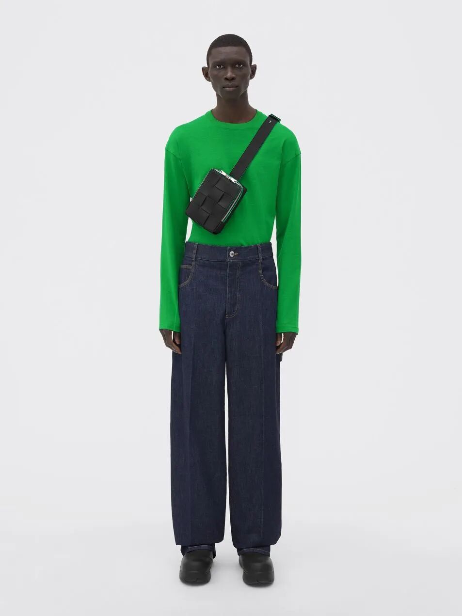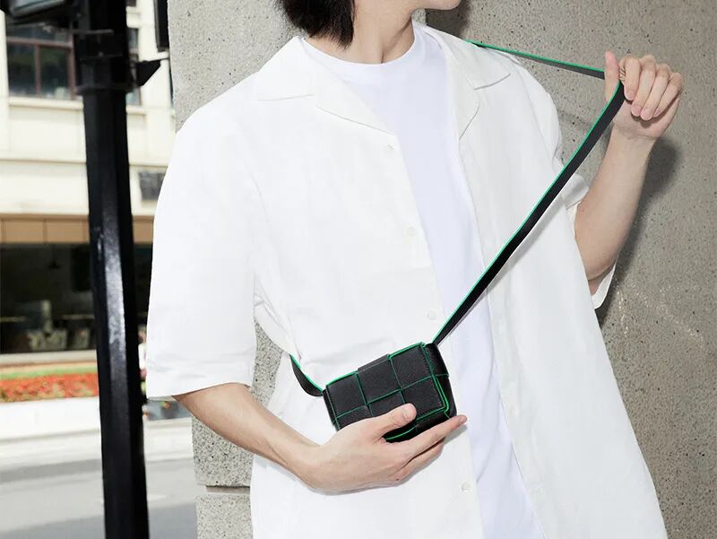 CASSETTE是Bottega Veneta历史上最热门的款式之一,以不同颜色和材质的演绎,堪称2020年代IT Bag的霸主。米卡示范在男士的三种携带法,但CASSETTE一直以来就没有性别限制。
