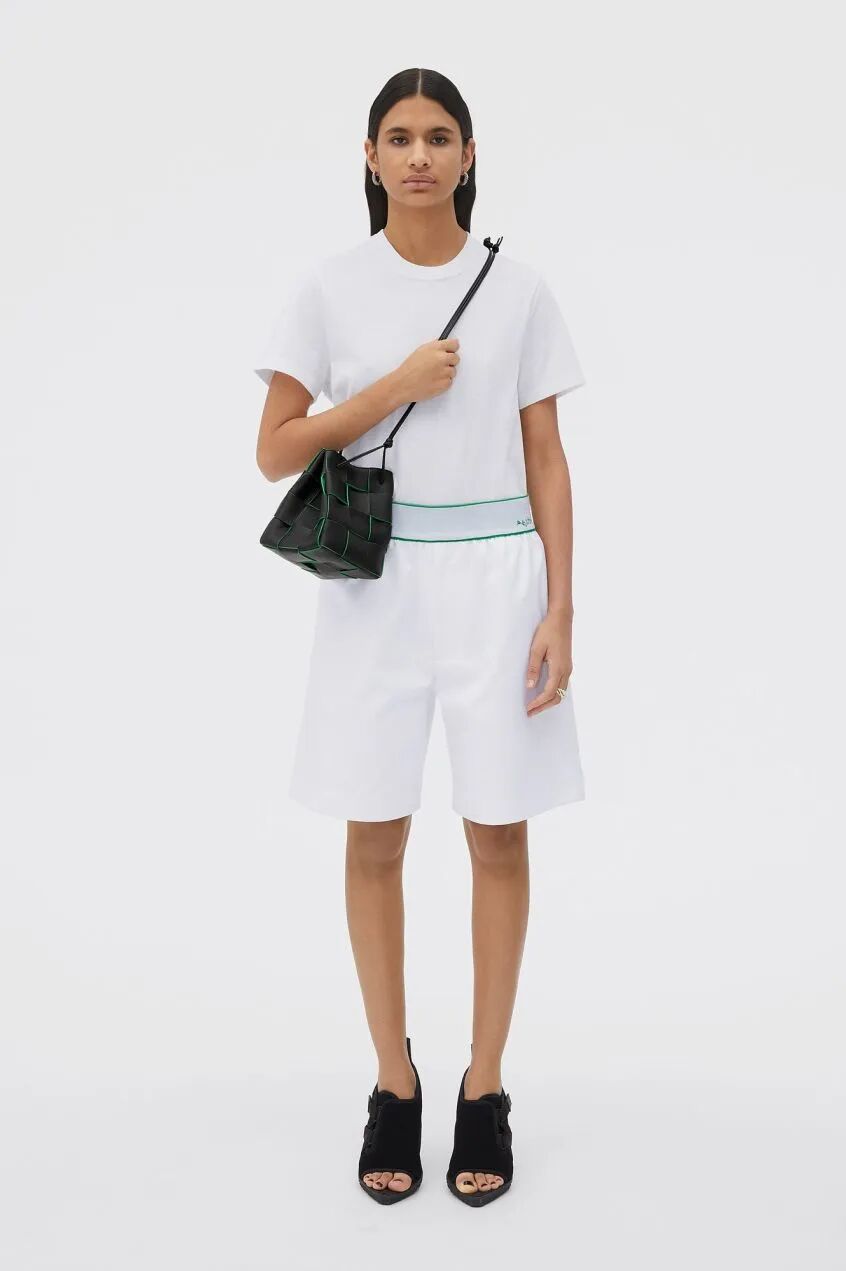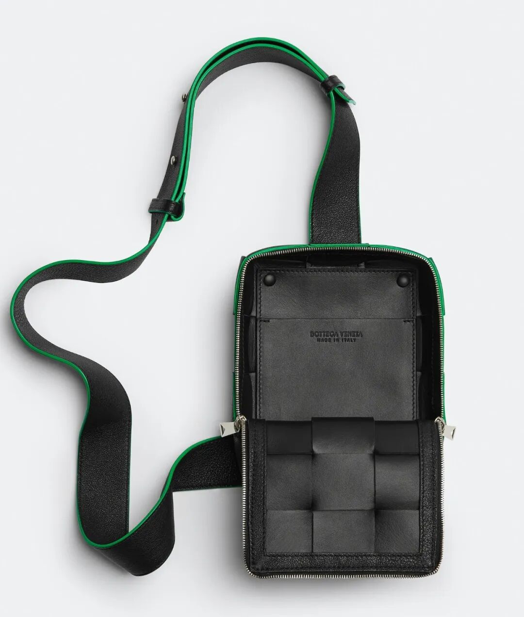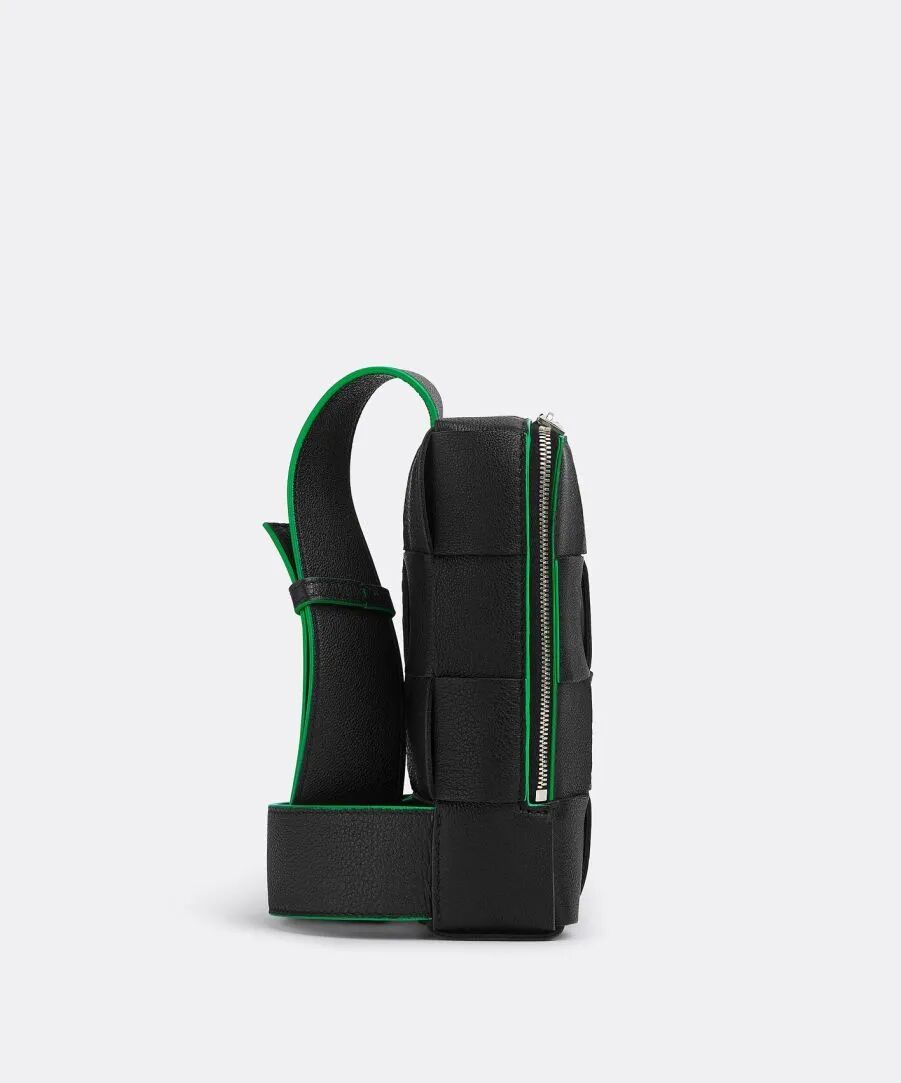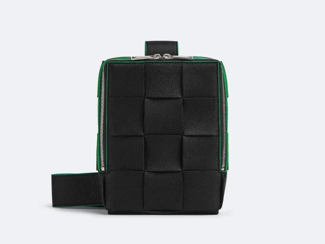 以水牛皮编织工艺Intrecciato,将品牌招牌的皮革编织技法放大,在这次七夕限定系列中呈现白色和黑色款拼鹦鹉绿的CASSETTE。