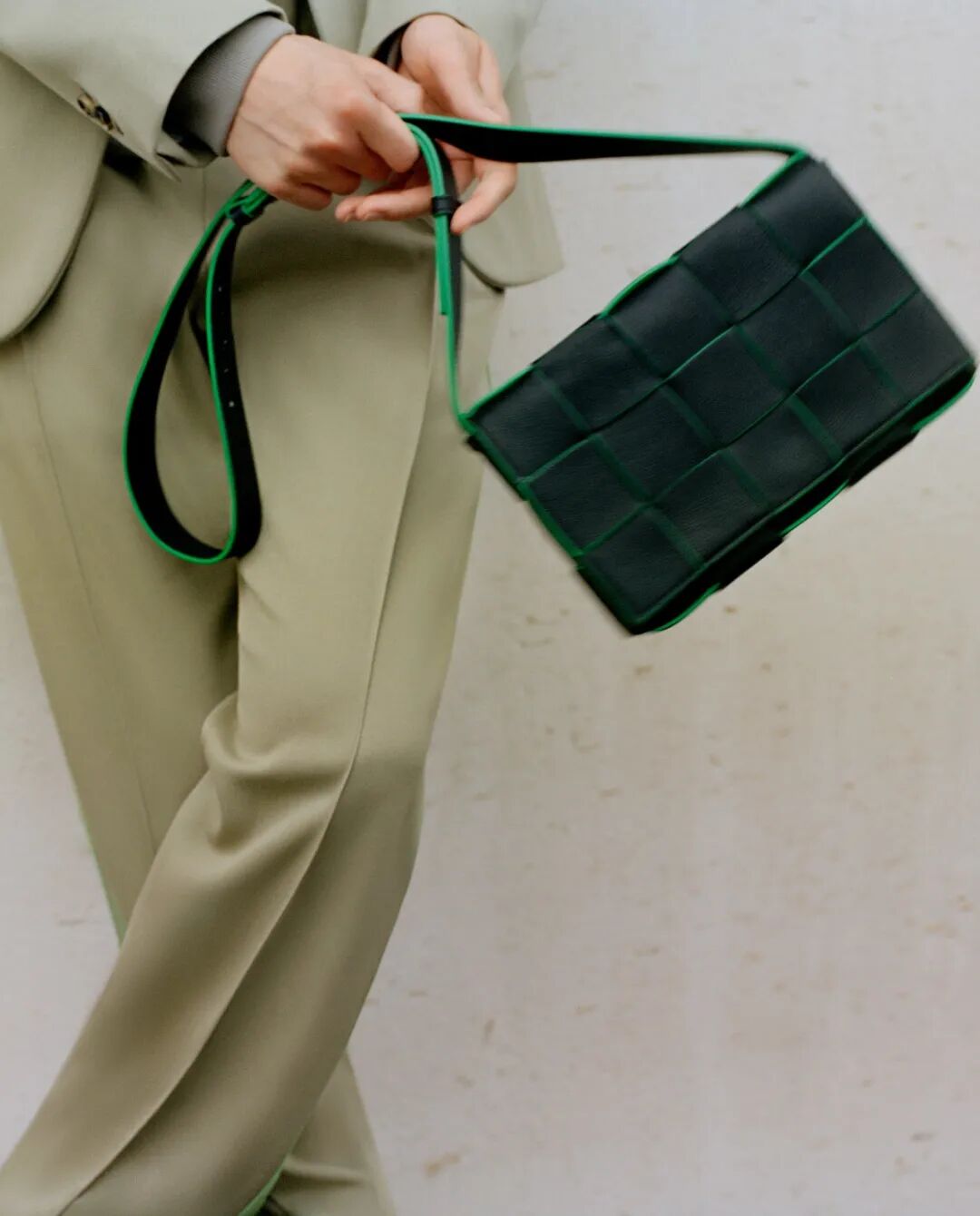 但它其实早在1985年Andy Warhol为Bottega Veneta拍摄的广告片《Bottega Veneta Industrial Videotape》中就出现了,Andy Warhol记录下当时美国富人们以及名流对Bottega的喜爱;到了1995年,“Bottega green”成为在维也纳旗舰店的主色调。