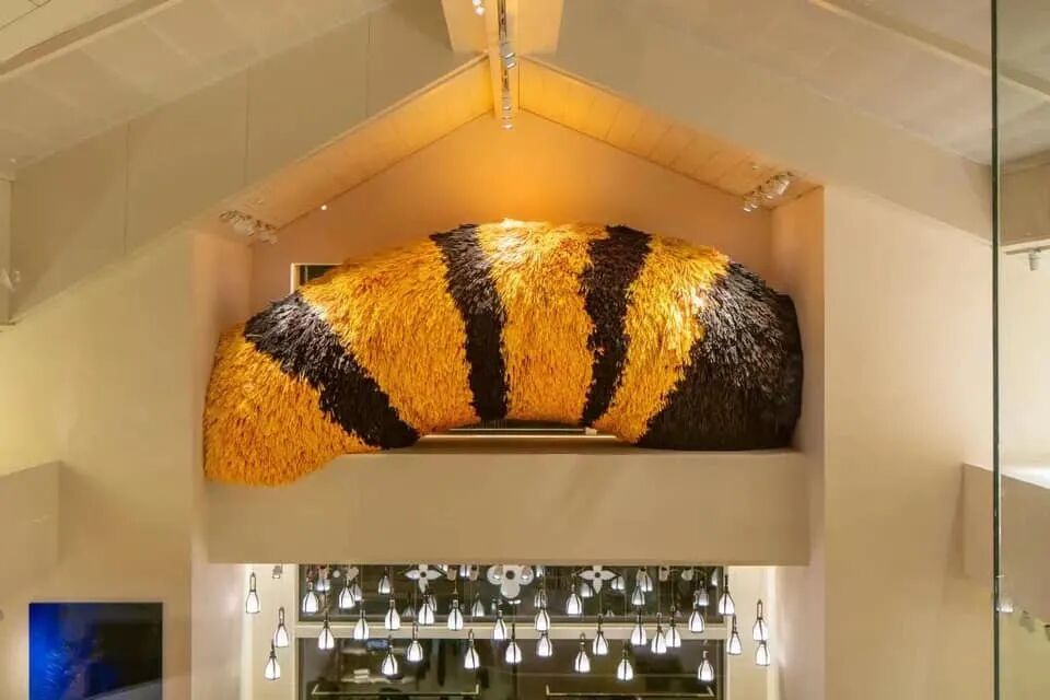 不仅采用全透明玻璃屋的设计,还有虎年特别艺术装置,一条老虎尾巴纵向盘踞了两层楼,引虎入室,也是很霸气了。并且巨大的老虎尾巴受到了众多网友的关注。