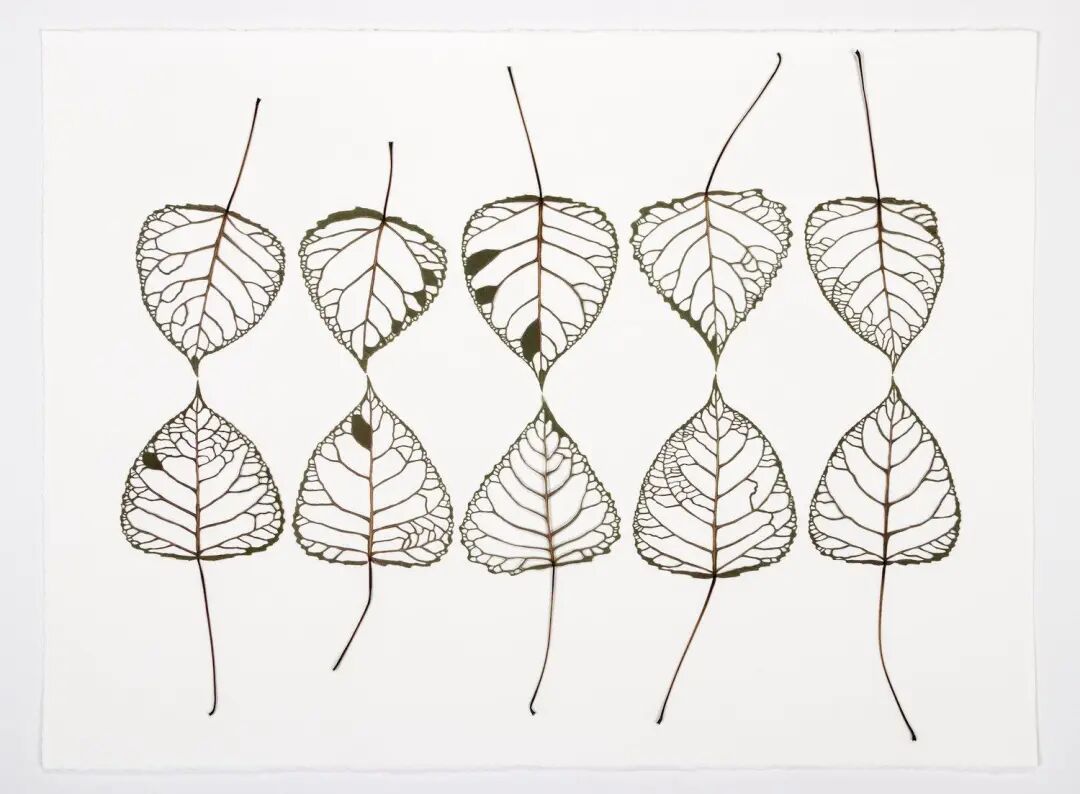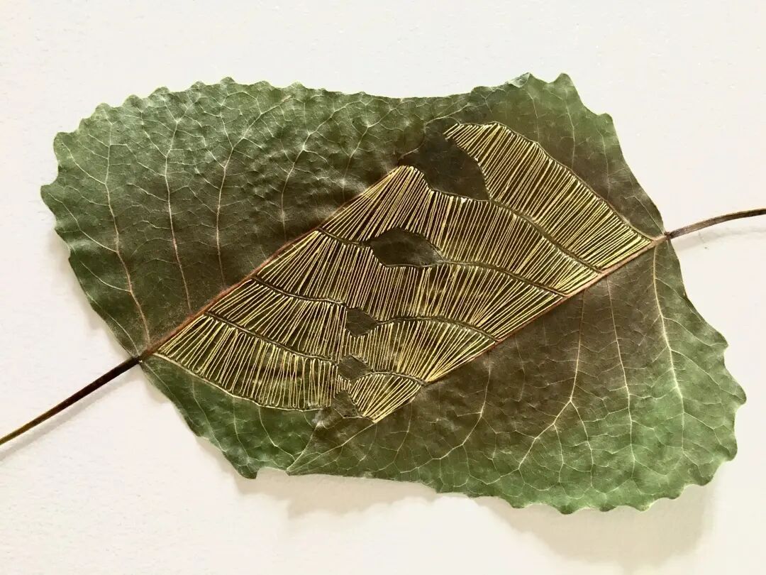 不论是缝合、绘画,还是打破重组,这位艺术家将线与叶的关系,展现得淋漓尽致。她围绕一片树叶创作的艺术作品充满了自然与人文气息,一片最终归宿是回归尘土的落叶,在希拉里·沃特斯·法伊尔的手中,完成了一次生命的升华。