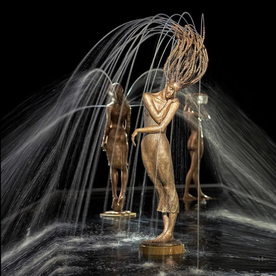 别出心裁地将铜艺与喷泉水结合在一起