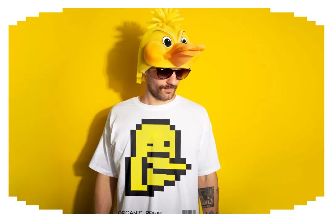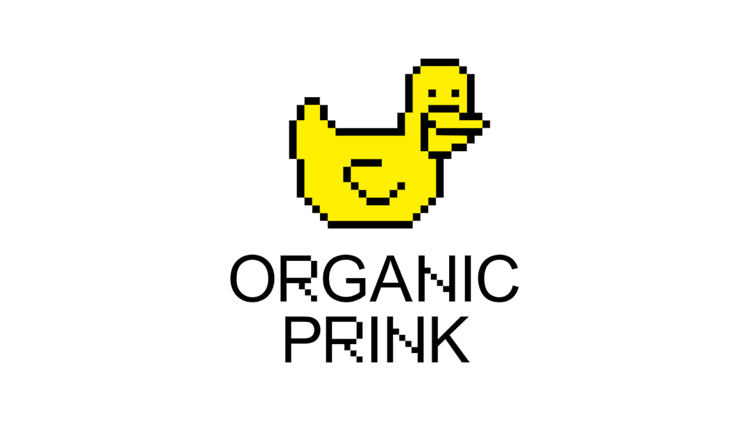 Organic Prink 标识不是花哨字体。而是选择了一个普通的 Arial,用像素稀释它。为什么是像素?突出技术美感,因为像素很酷。创建了一个干净的白色标签,以免分散对主要事物的注意力,有什么比鸭子更好的呢?只是一个大像素鸭!
