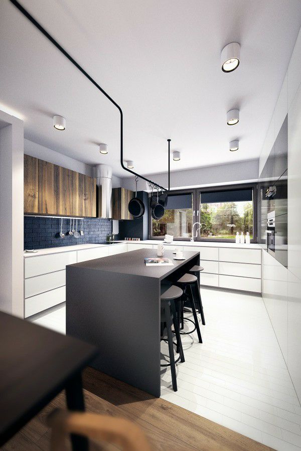 厨房的灯光一般需要两个层次,一个是整体的照明,另一个则是照亮操作区,因为操作区一般都会为了储物方便,加做吊柜,挡住一部分光源,使用,操作台的照明是非常有必要的。