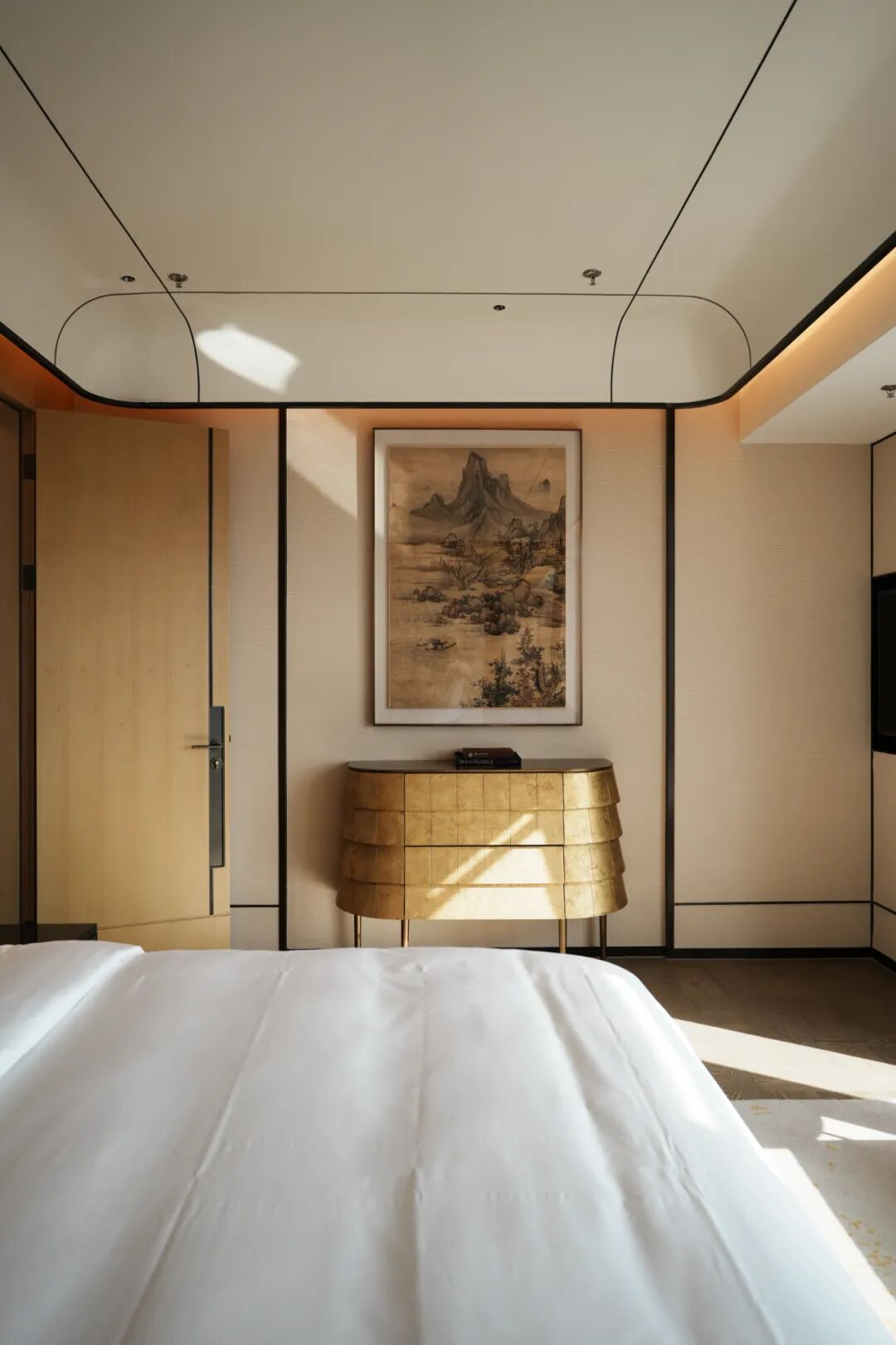 ▲ 卧室边柜的金色鳞片式柜壳,默默致敬了紫禁城的金色琉璃瓦和古代盔甲。