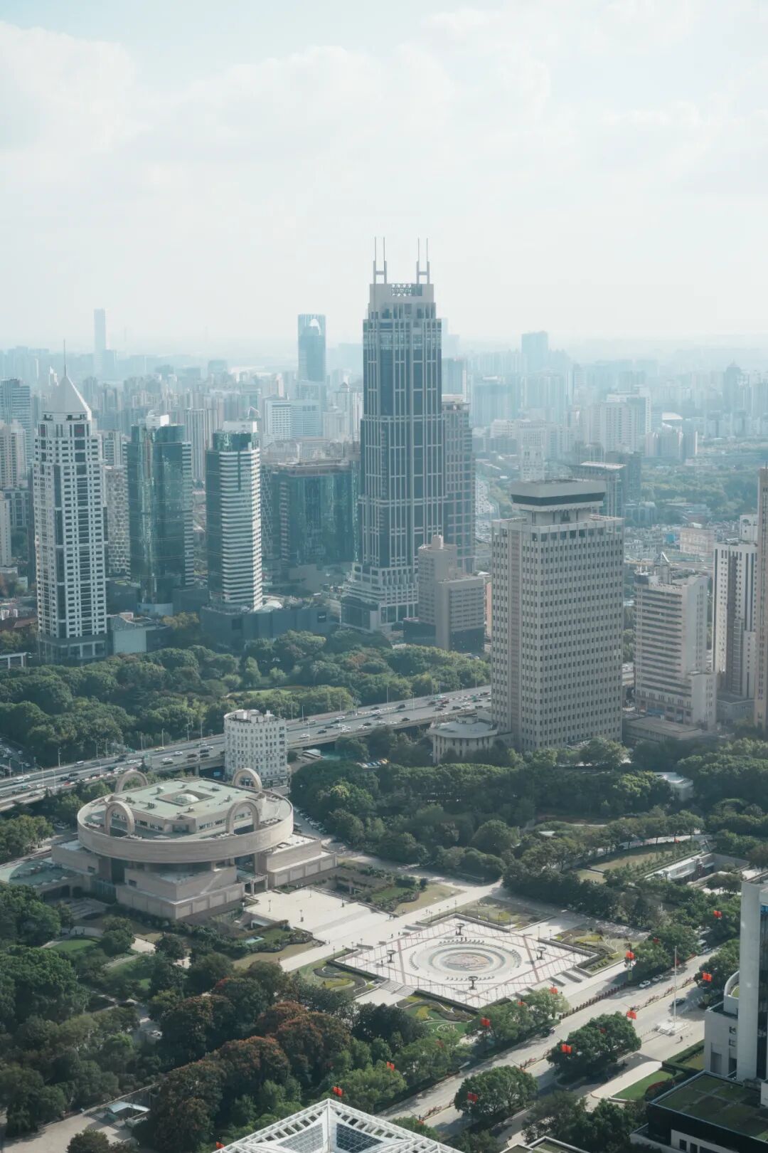 南向窗户直面人民广场绿洲及浦西天际线,宽广深邃的绿意扑窗而来,为这座都市C位高空酒店引入了无尽的惬意与逍遥。