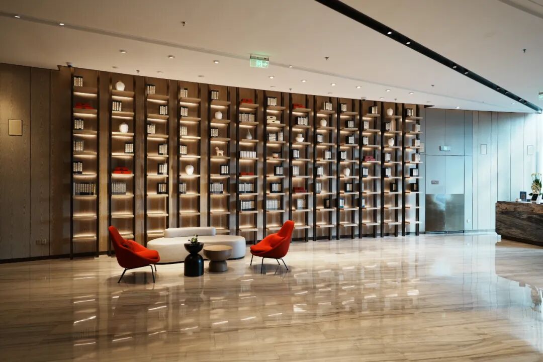 接待厅沿线还缀以书阁、书画屏风、线条明快的家具和当代艺术品,把康莱德的当代形象、中国的深厚文化和上海的潮流脉搏,演绎得丝丝入扣。