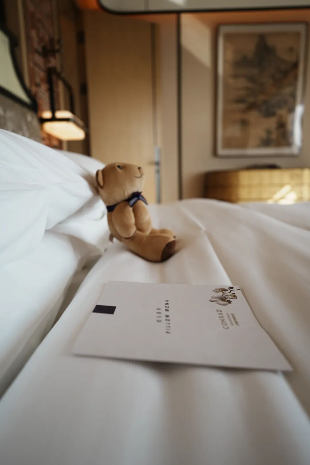 ▲ 每间康莱德必带走的战利品“康莱德熊”、多达7种选项的枕头菜单,为酒店的睡眠体验增色不少。