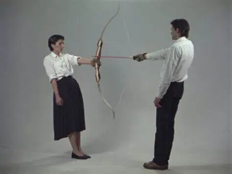 1980年,玛丽娜和乌雷制作了“休息能量”,这是一场无声的悲剧表演,描绘了这对夫妇痛苦的关系:在视频中,他们在张开的弓的相对两侧保持平衡,箭头指向阿布拉莫维奇的心脏,乌雷只要用一根手指就可以杀死她。