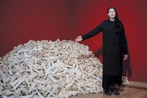 1997年,她受邀代表塞尔维亚和黑山参加威尼斯双年展南斯拉夫馆。她在中央展馆阴暗的地下室设计了“巴尔干巴洛克”表演,每天六个小时,持续四天。玛丽娜坐在一堆牛骨头上,她清理了残留的肉和软骨,作为道德净化和谴责巴尔干地区种族清洗大屠杀的仪式,作品赢得了艺术家金狮奖。