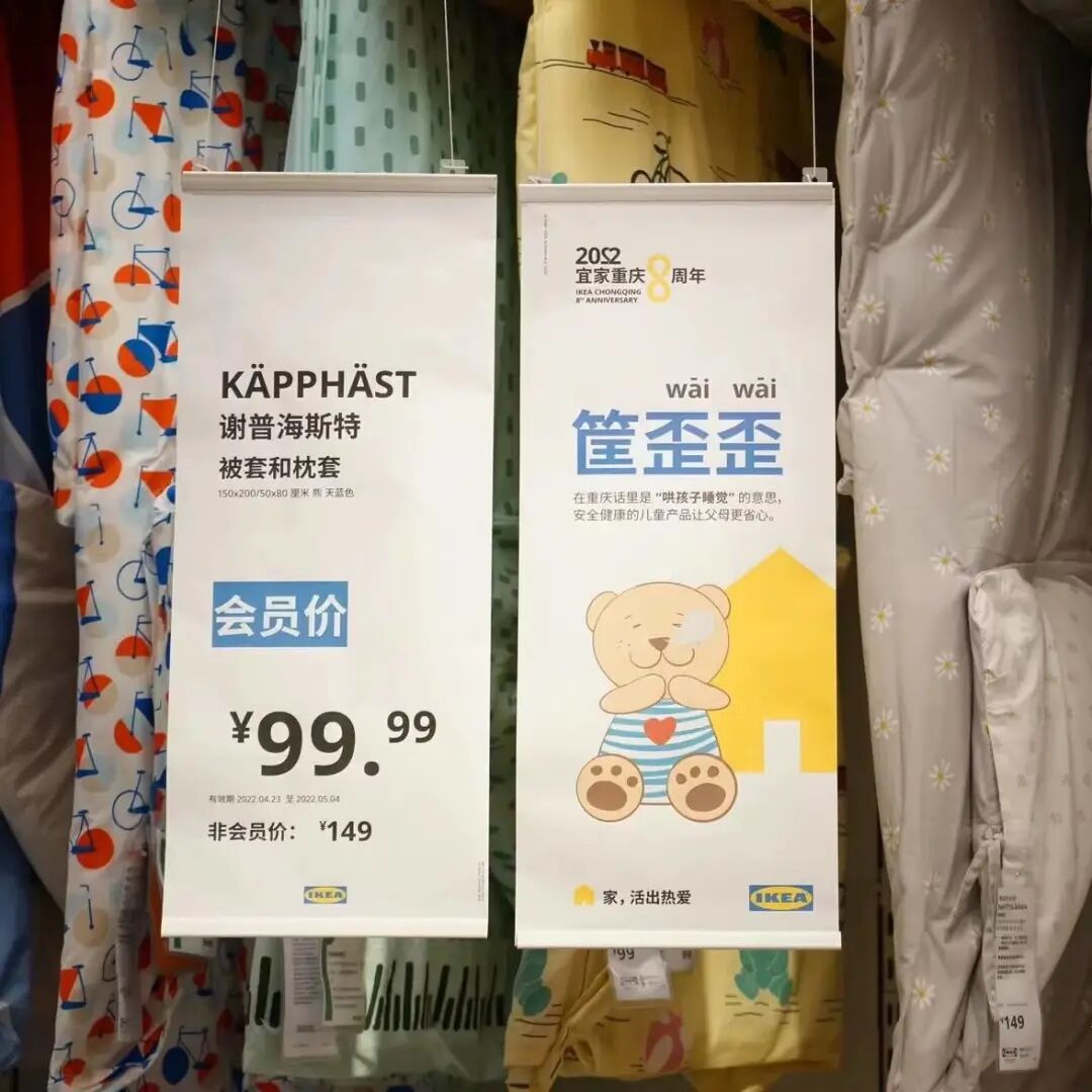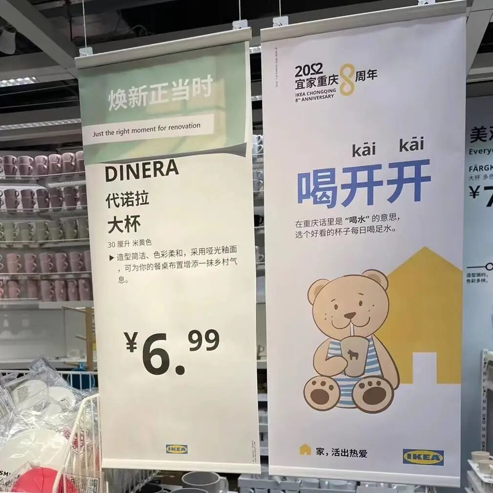 从之前宜家“东北话”标语的出圈,到这次宜家“青岛话”标语的上新,每到一个城市,宜家的方言技能似乎就会被点亮,成了线下打卡的一道“风景线”(拍照点)。