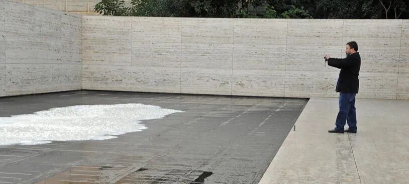 艾未未说:“我的作品探究的是生命机器的新陈代谢。事实上,建筑物并不是静止的,水池里的物质在默默地更换,参观者察觉不到。保持牛奶和咖啡的状态就如同维持一个生命体,要满足对光线、空气和温度的要求。”