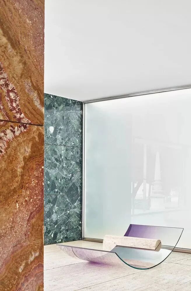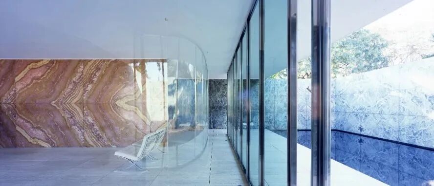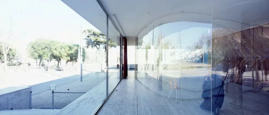 以轻盈材质闻名的日本建筑师妹岛和世与西泽立卫来到巴塞罗那馆,利用亚克力来做透明的窗帘,使巴塞罗那馆的现有空间可以不受打扰。