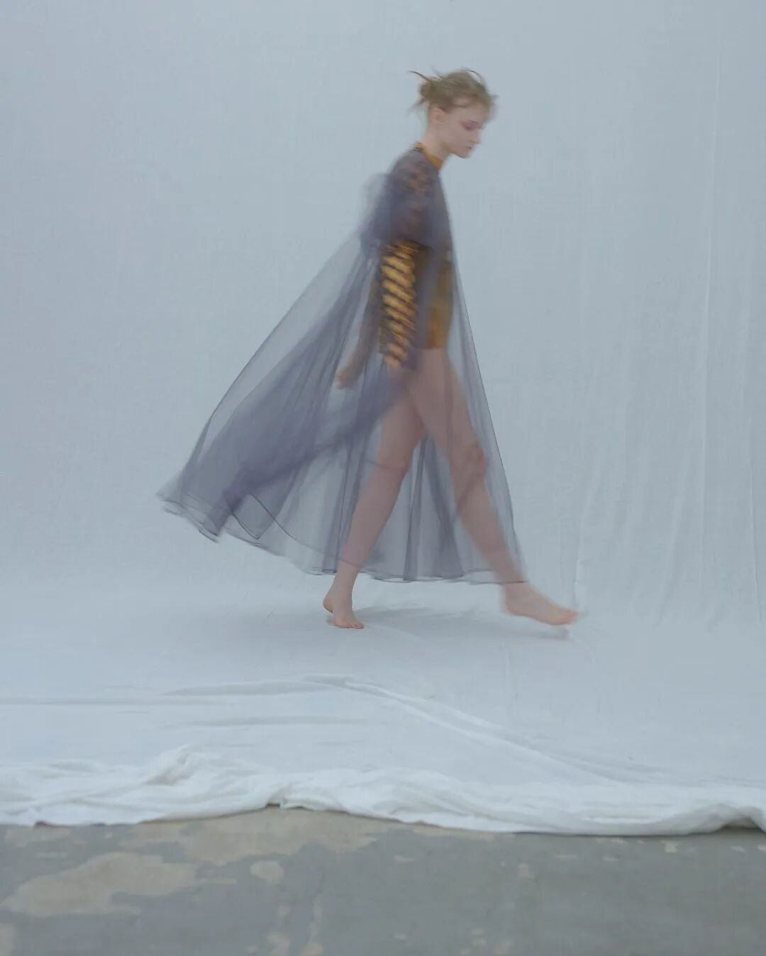 Kisada的灵感和参照点总是来自女性。一直专注于创作强烈的女性优雅,然而,过去的一季里,她花了很多时间与国际知名芭蕾舞演员尼山晴夫合作,不仅使她“思维方式的细微差别开始像冰一样融化,”而且新的系列,你会看到Niyama本人在整个演出中穿着Kisada的芭蕾舞裙在幕后跳舞,而Kisada也找到了男性与女性的平衡。