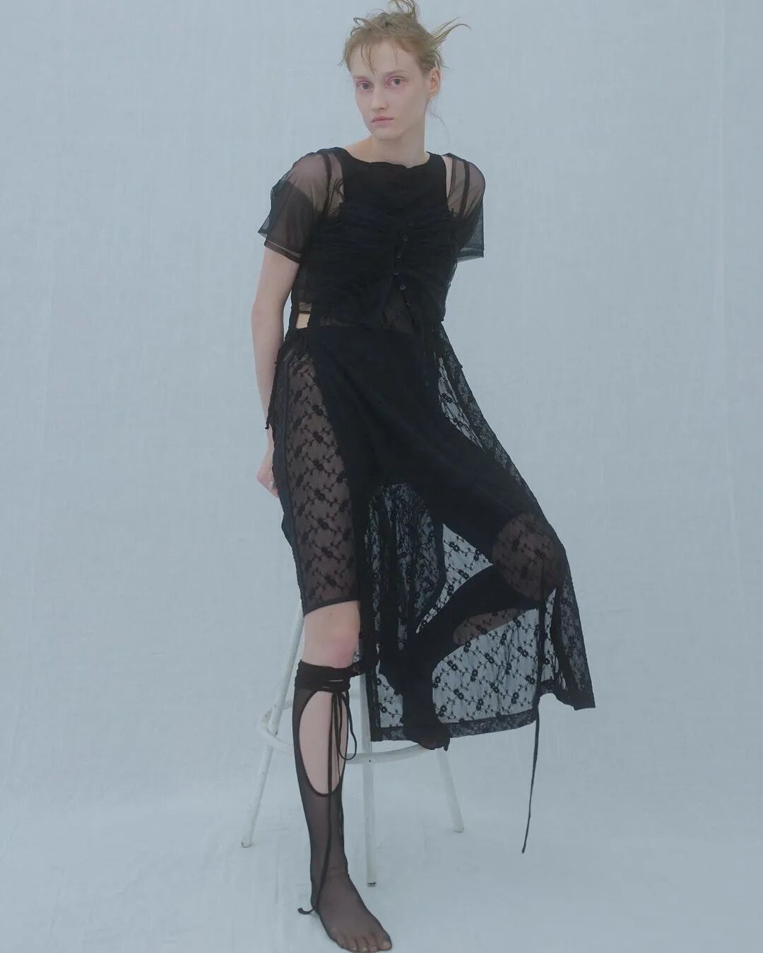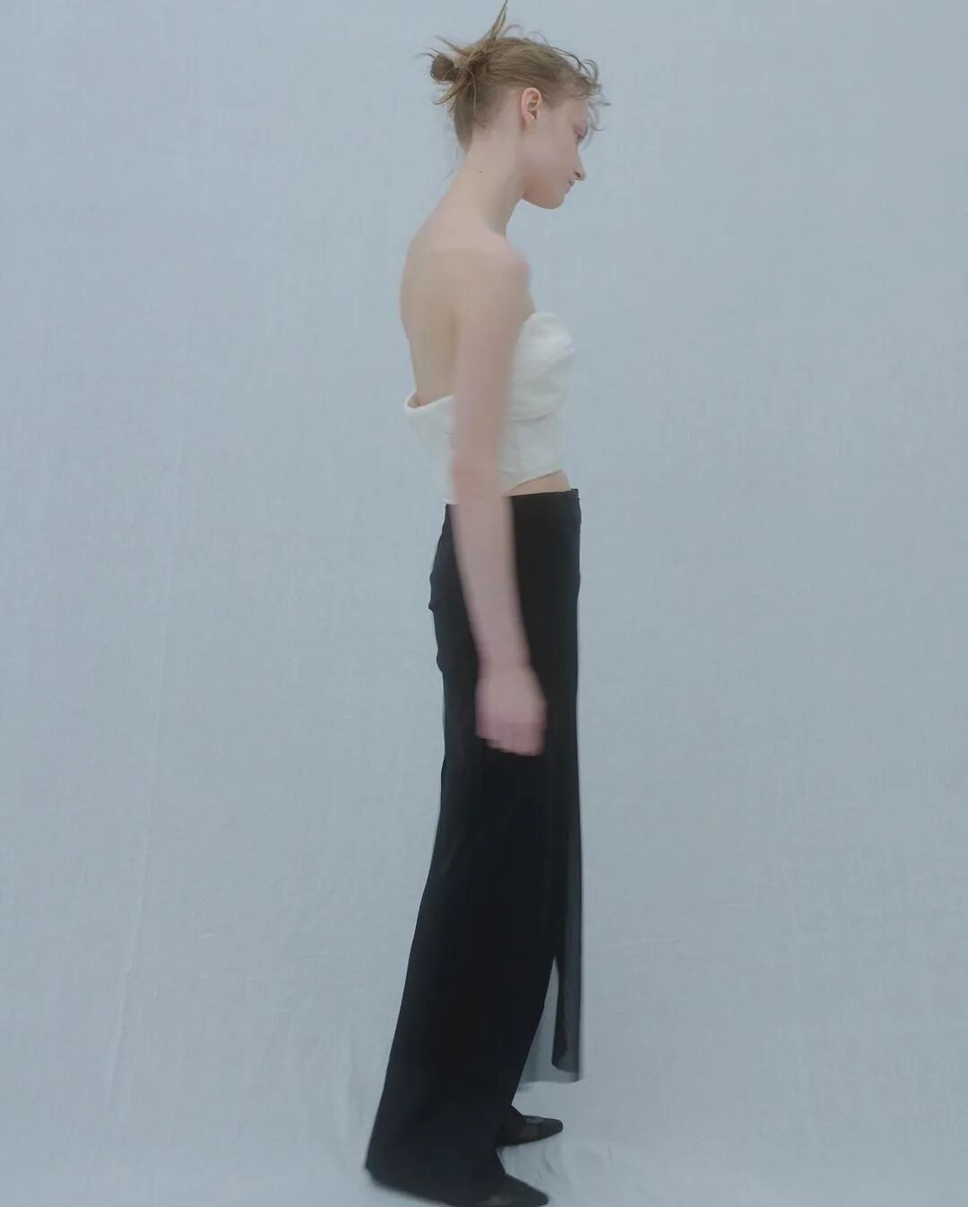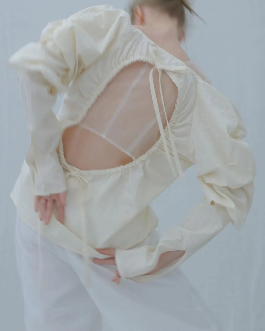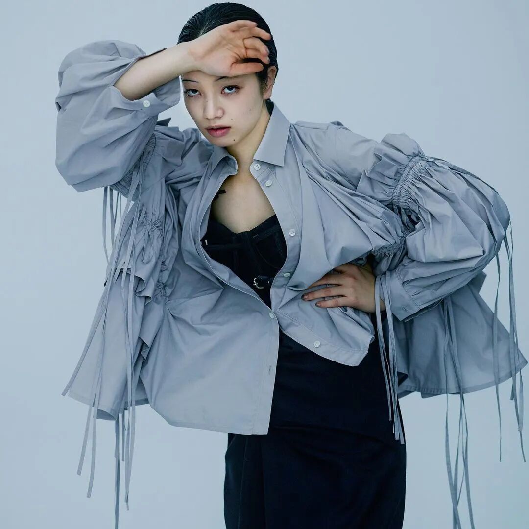 Chika Kisada2023春夏系列”装饰品“,设计师探讨现实与幻想之间的故事,你会看到苍白的色调,温柔的影子和精细的技巧。 Kisada从舞蹈动作中获得灵感,表达一种精神与肉体,织物与身体微妙、诗意的感觉。