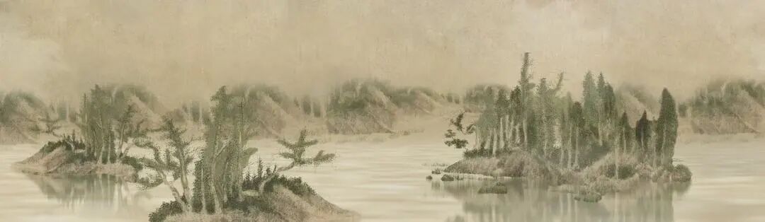 《山水》 展演现场 主屏以钱选《浮玉山居图卷》为主屏