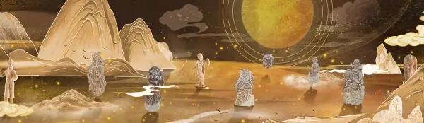 而《山水》中,笙、阮、箜篌乐声齐鸣,上博馆藏元代钱选的《浮玉山居图》徐徐展开。随着乐声,观众犹如林中探路,一路见奇木怪石,越走越开阔;与乐声联动,幕布上的画面利用数字技术创造出立体效果,仿佛让观众穿行于画中,站在此山望彼山。而作为终章的《丝路》,在众多乐器合奏之中,以漫天金沙效果开场,运用大量文物形象穿插于漫漫古道之间,让人感叹丝路之壮美。