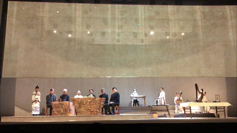 不只有“古老”。第二首《水行》之中,两名演奏者端坐舞台,怀中抱着形似飞碟的银色乐器。叩击其上,滴答作响,瞬间便将观众带到江南水乡的雨后黄昏,雨滴顺屋檐滚落,敲击在青石板路上。这件造型奇特的乐器是手碟,诞生于2000年。在越来越急促的“雨滴”声中,演奏者一袭素色长衣,吹奏着尺八缓缓行来,这一源于中国的传统乐器传入日本后在当地流行,音色苍凉辽阔,仿佛带领观众走出烟雨江南,穿越溪流河浜,抵达烟波浩渺的湖海之水,融合手碟的声音,空灵而恬静。