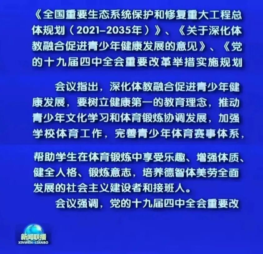 2020年4月,《关于深化体教融合促进青少年健康发展的意见》等政策被审核通过。