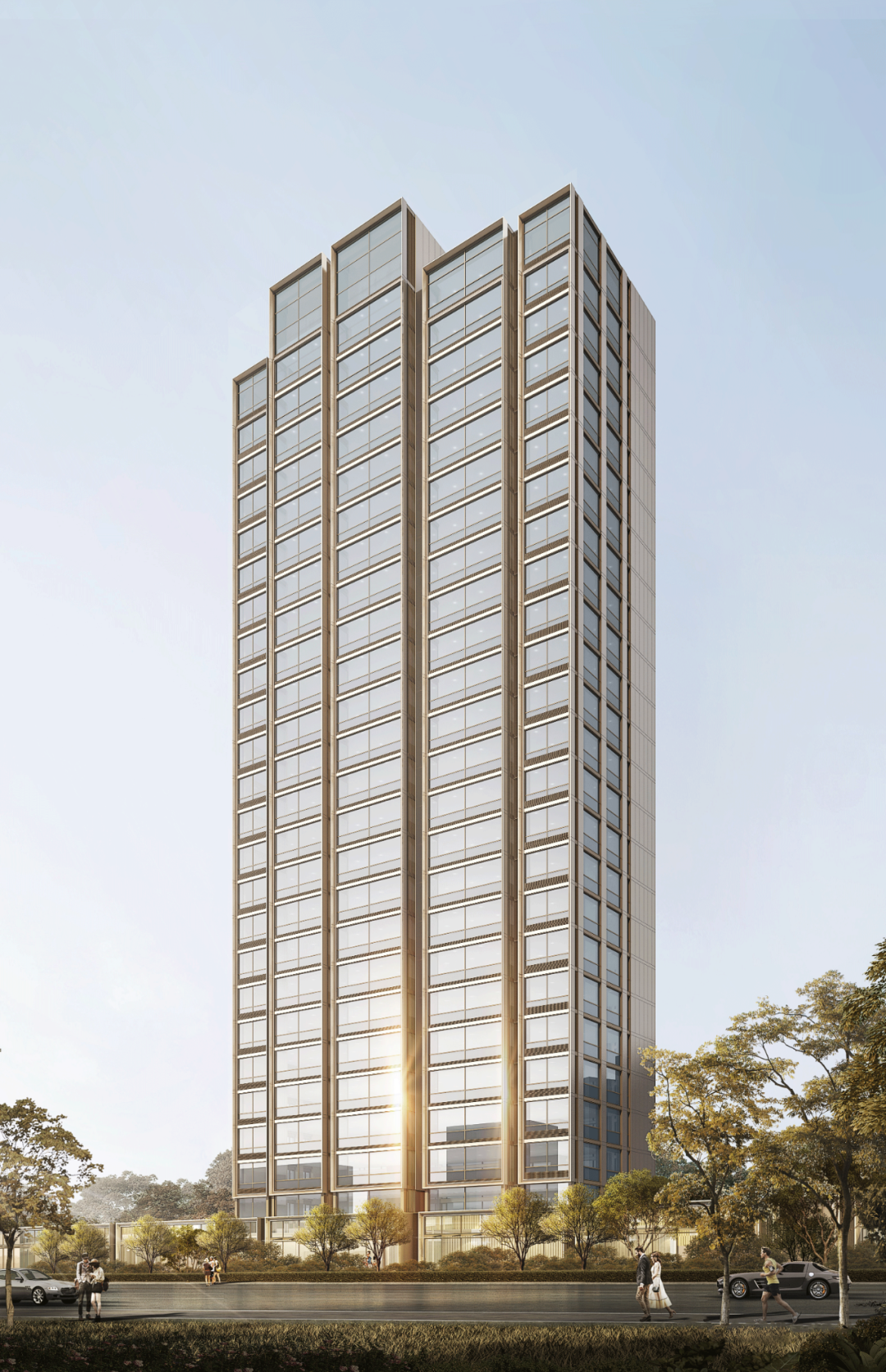 从江潮的自然律动,找到了建筑灵感,他们让富有变化的错落立面成为整个项目的立体视觉,宛若矗立在江岸的演奏者,演奏着自成天然的韵律美学。