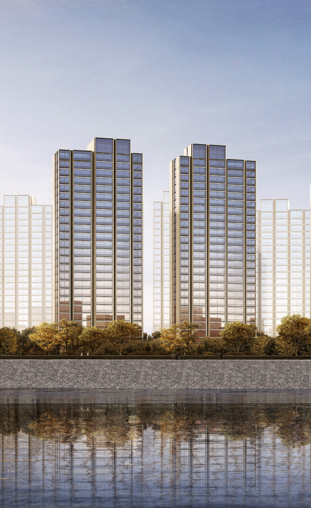 于是,人与自然、人与城市、人与社会便成了此项目绕不开的设计主题。也正因此,一座座建筑以冲上云霄的姿态书写着这座城市的天际线,从连续性到独立性,审视着这瑰丽的江景,让大宅成为一场有的放矢的实践。