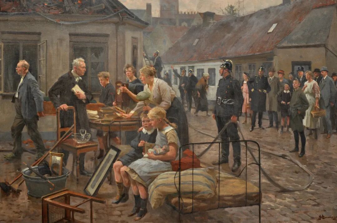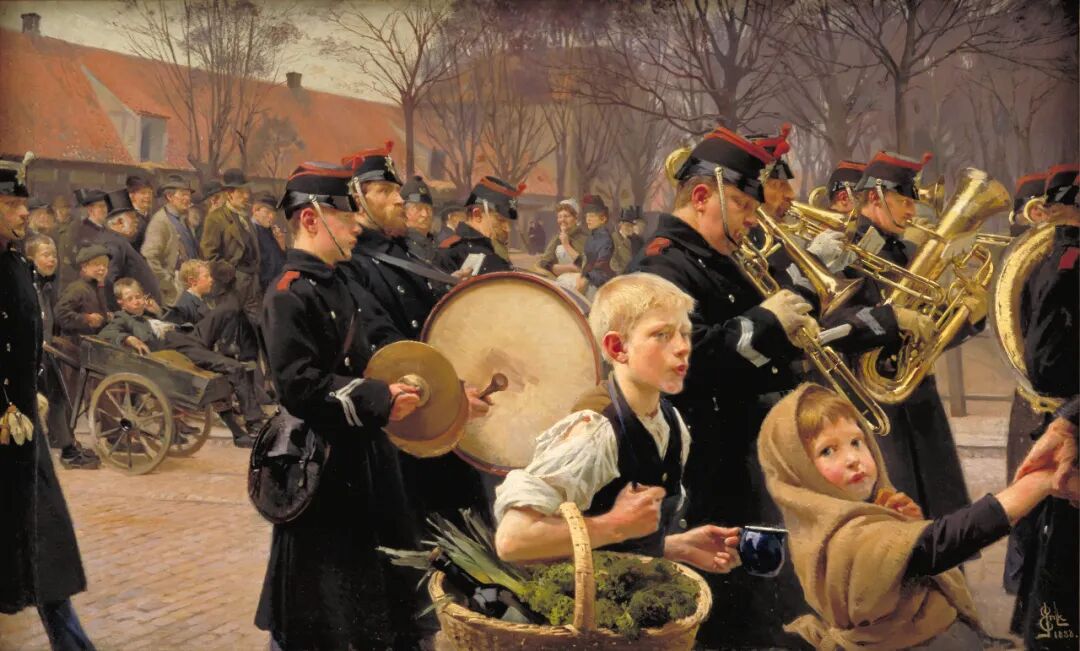 他还描绘了人类生活中轻松的一面,如他在哥本哈根的街头生活画。到了世纪之交,亨宁森主要画历史场景。