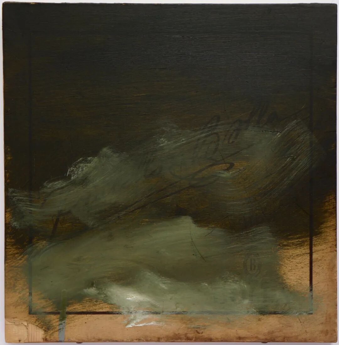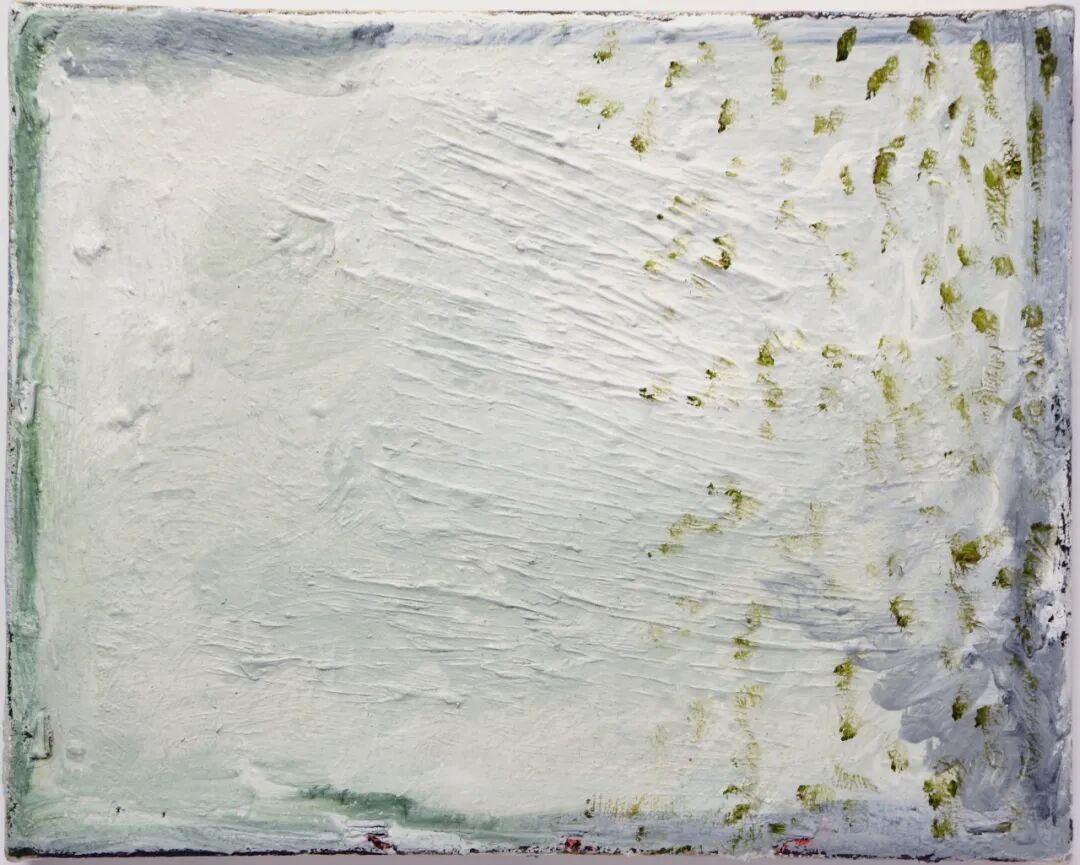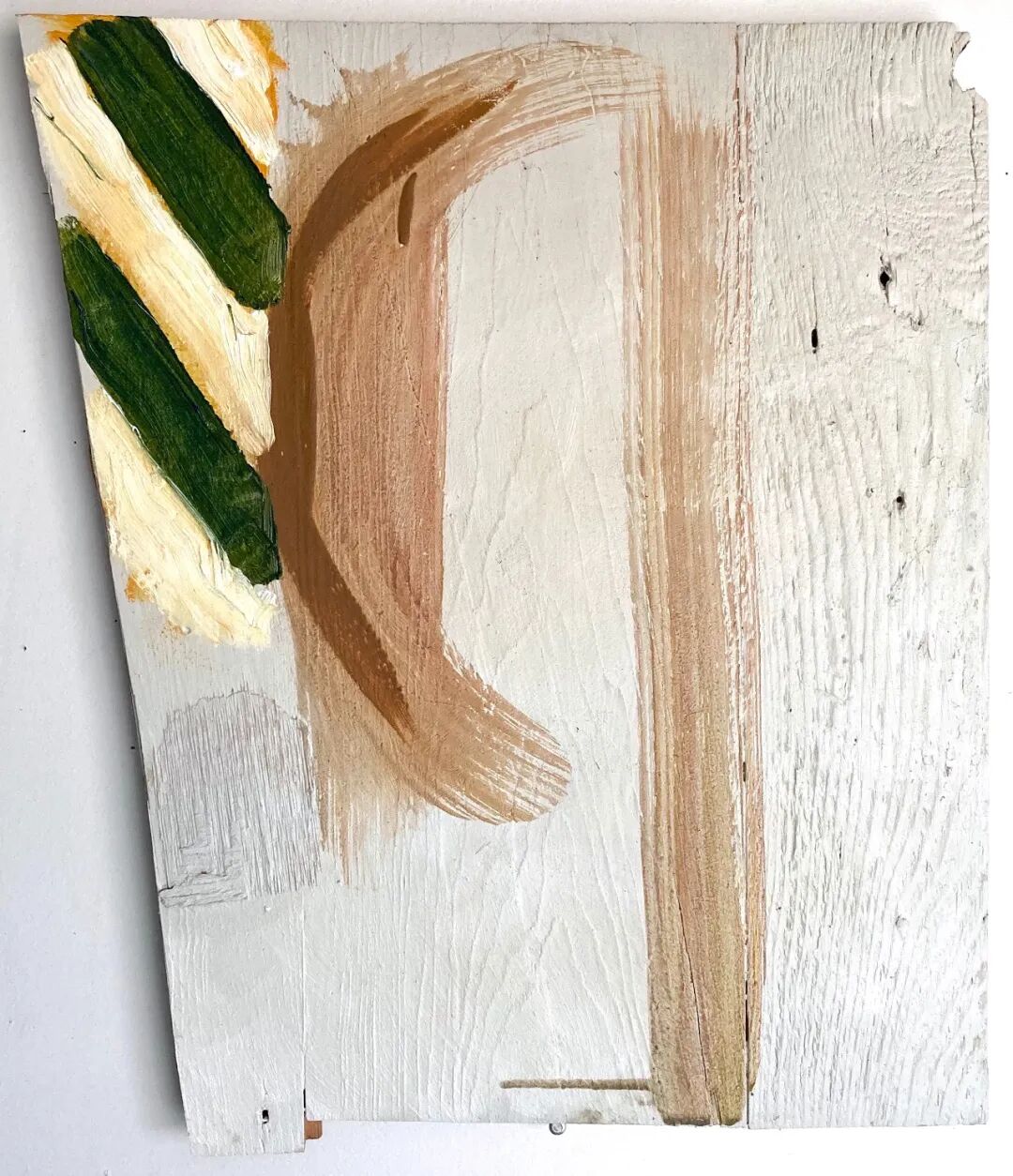 “无题(绿板)”,2020 木头油画、蜡和房屋油漆 9.5“x 14”