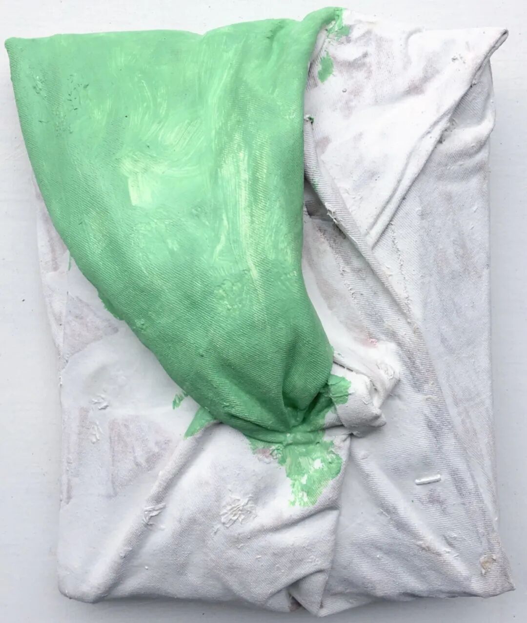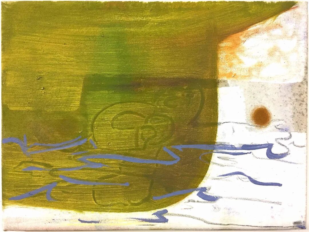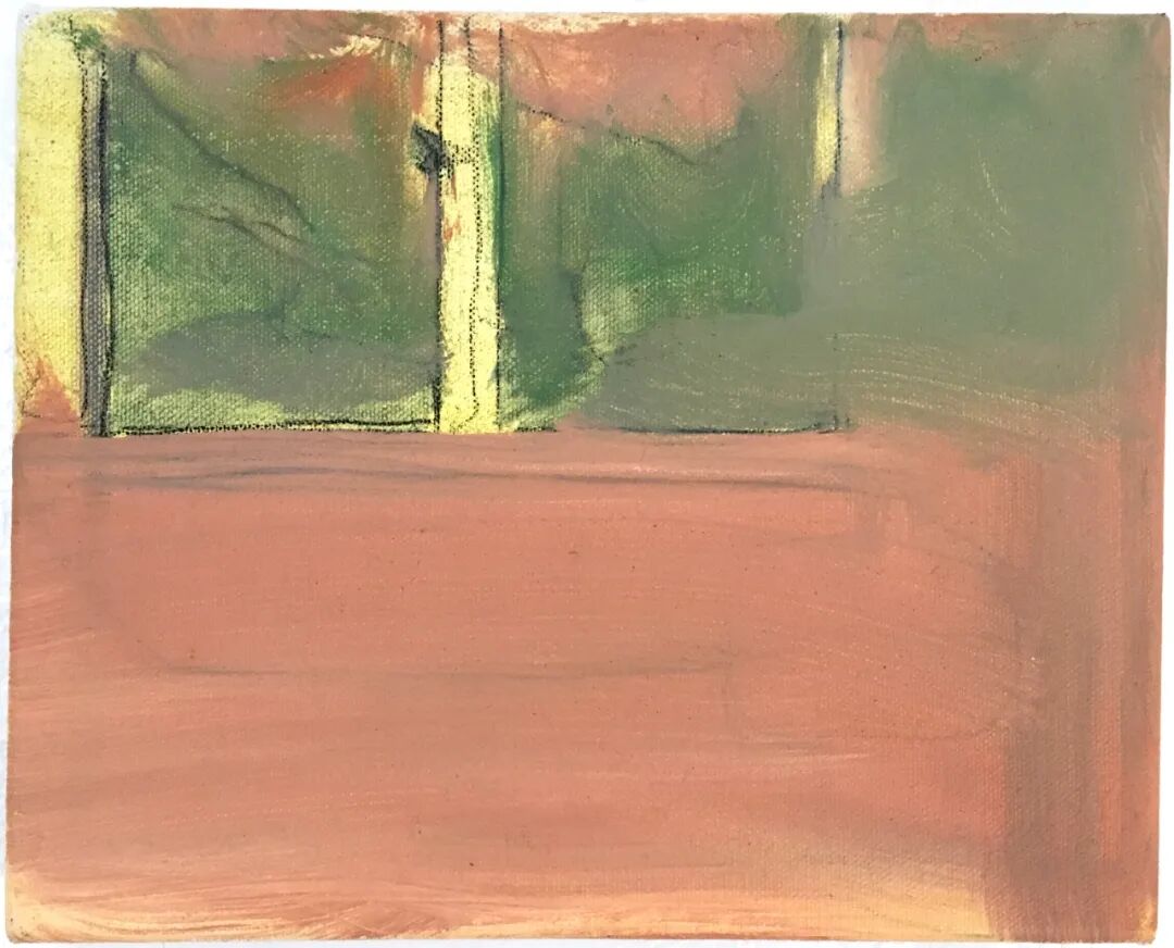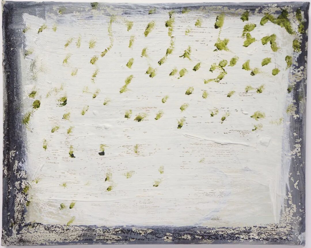 “无题(绿板)”,2020 木头油画、蜡和房屋油漆 9.5“x 14”