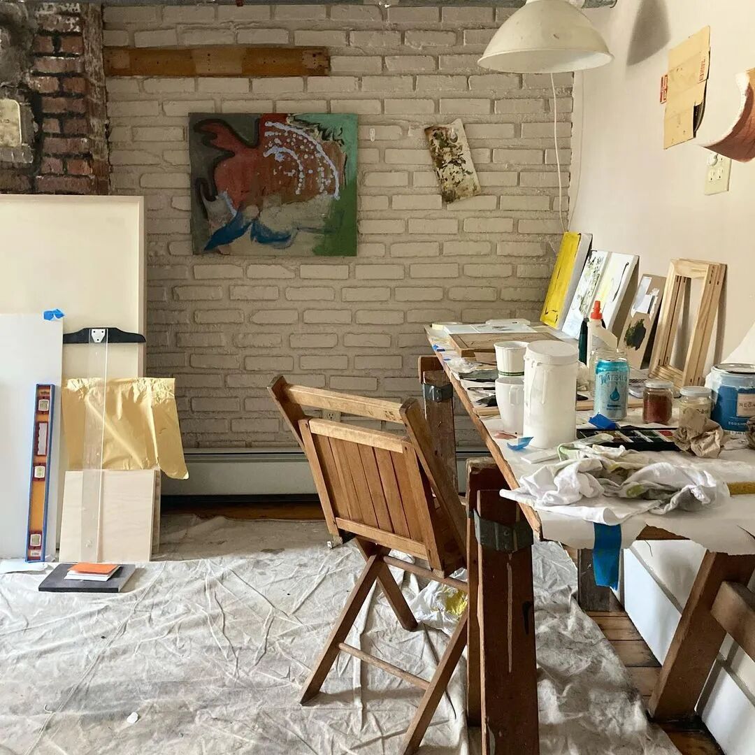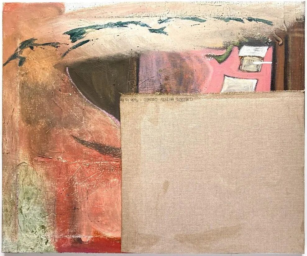 无题(L 代表 Drury Lane),2021 年,亚麻布上油画、蜡、丙烯、拼贴和木炭 22”x25”
