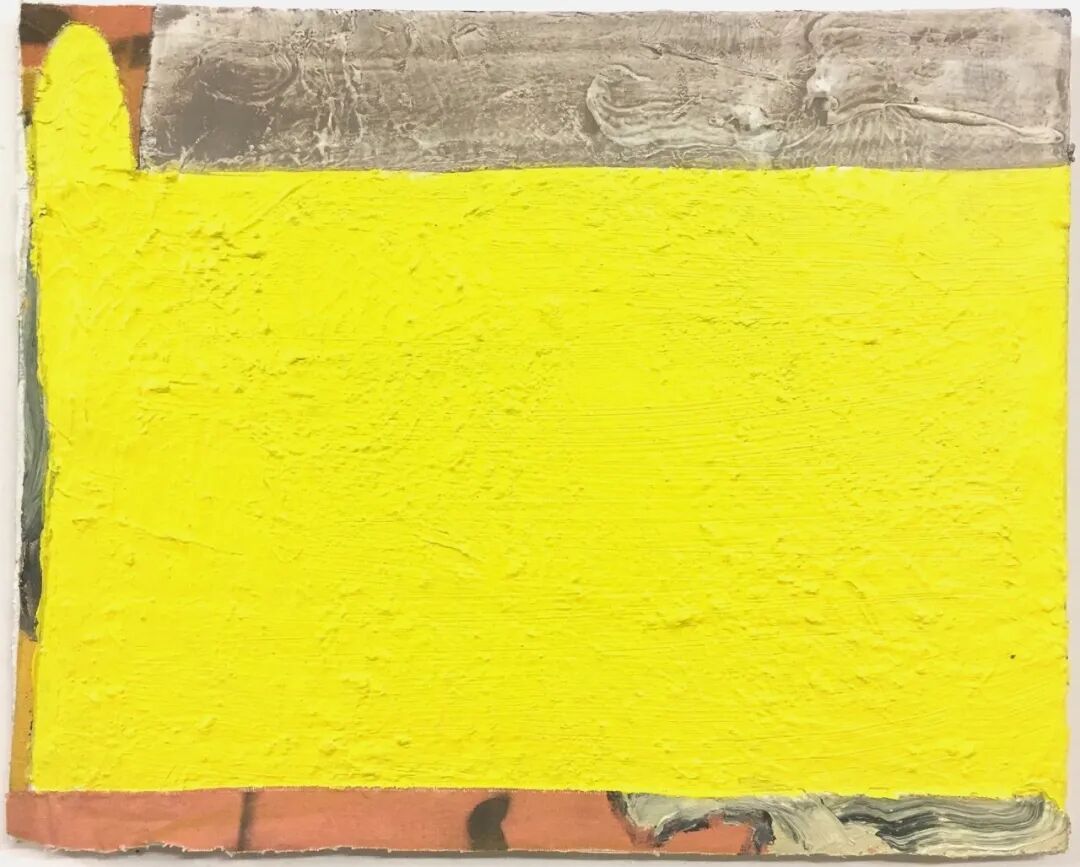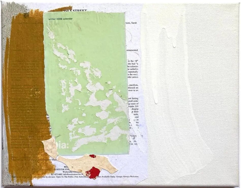 无题(带 S.R.),2022 年,油画、干颜料、丙烯酸房屋油漆、纸拼贴和亚麻布上的粘合剂,11”x14”